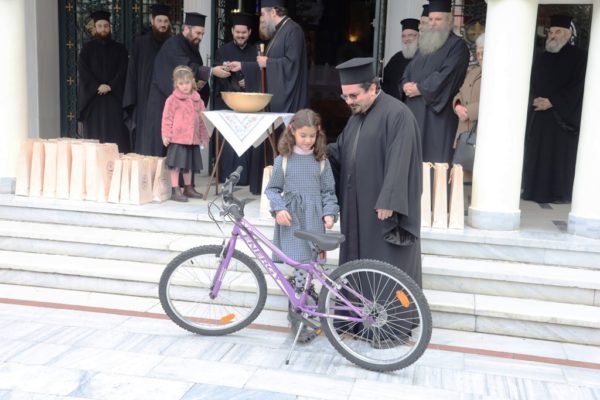 Ο Σεβασμιώτατος κ. Θεολόγος ευλόγησε με την πατρική του παρουσία όλους και βέβαια ήταν εκεί και στην κλήρωση που ακολούθησε για τα παιδιά με πλούσια δώρα. Κατ’ αυτή κληρώθηκαν βιβλία, ποδήλατα, επιτραπέζια παιχνίδια και δόθηκαν διάφορα γλυκίσματα. Ευχή και προσευχή όλων ήταν τα φετινά Χριστούγεννα να μοσχοβολήσουν από πίστη, χαρά, ελπίδα και αγάπη.