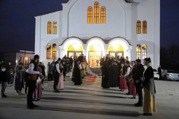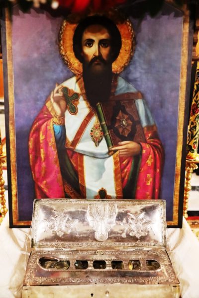 Το χαριτόβρυτο Λείψανο του Αγ. Βασιλείου, κόμισε ο ίδιος ο Σεβασμιώτατος κ. Θεολόγος, με την συμπροσευχητική παρουσία του ιερού κλήρου, αντιπροσωπειών πολιτιστικών Συλλόγων με τις παραδοσιακές φορεσιές και τα λάβαρά τους και του φιλαγίου λαού του Θεού, οι οποίοι προσήλθαν να λάβουν την χάρη του Μεγάλου Καππαδόκου Ιεράρχου.