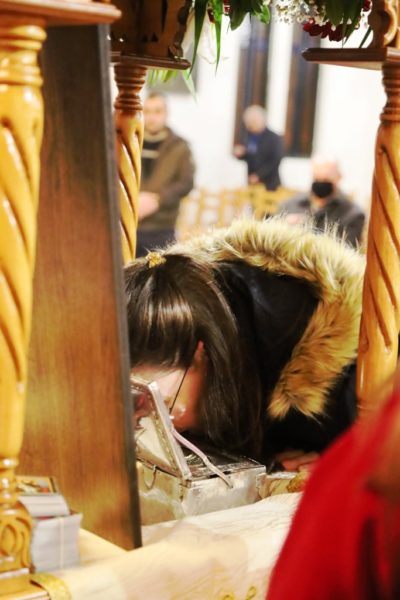 Εν συνεχεία, τελέσθηκε η Δοξολογία επί τη υποδοχή του ιερού Λειψάνου, χοροστατούντος του Σεβασμιωτάτου κ. Θεολόγου, ο οποίος ευχαρίστησε τον Μακ. Αρχιεπίσκοπο Αθηνών και πάσης Ελλάδος κ. Ιερώνυμο και την Ιερά Σύνοδο της Εκκλησίας της Ελλάδος, για την μεγίστη ψυχοστηρικτική αυτή ευλογία, εν όψει και της μεγάλης εορτής των Χριστουγέννων καθώς και τον φιλάγιο λαό, για την συγκινητική συμπροσευχητική του παρουσία.