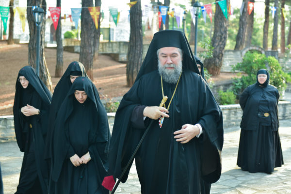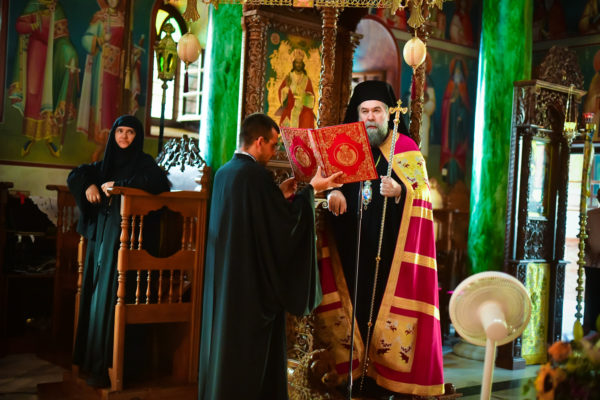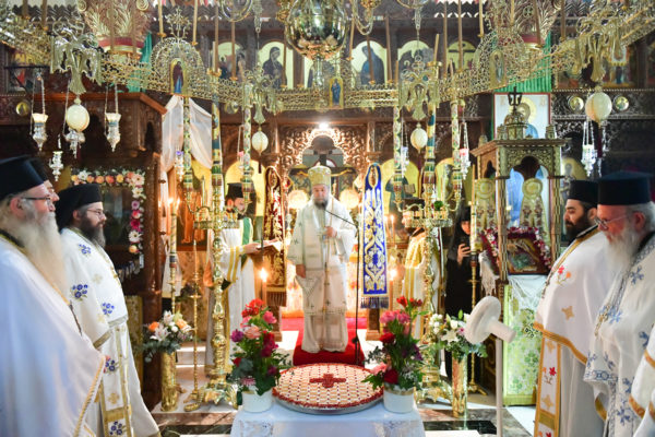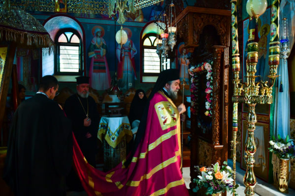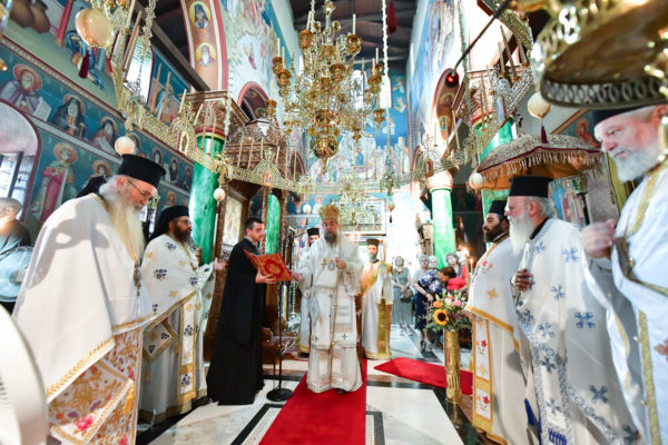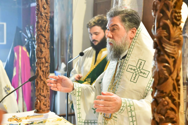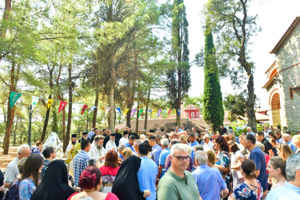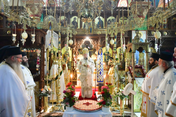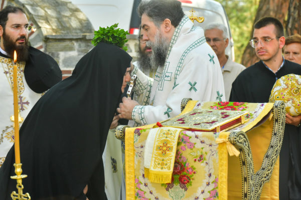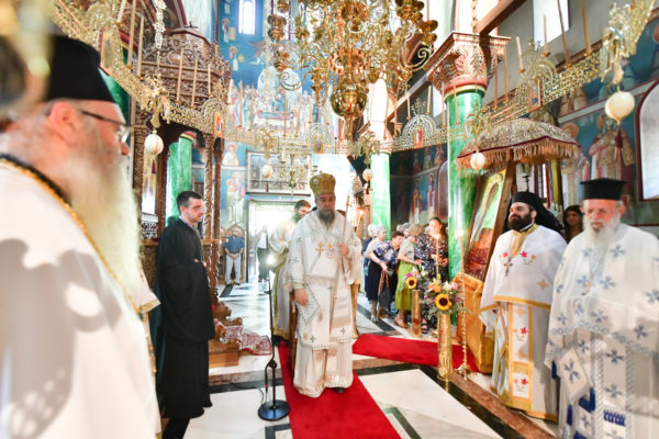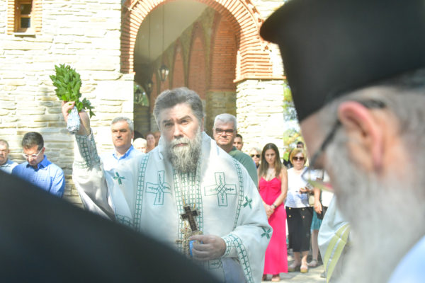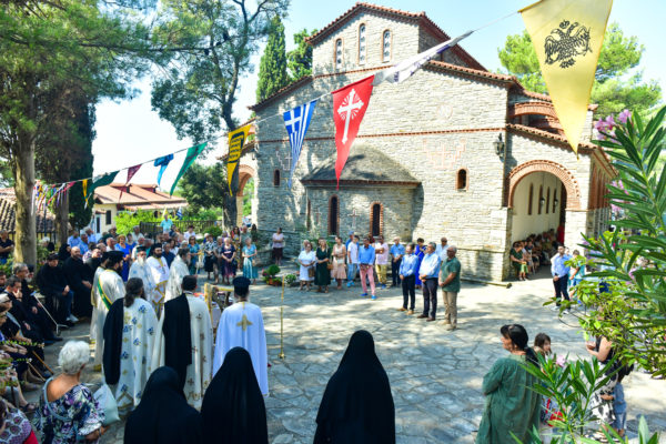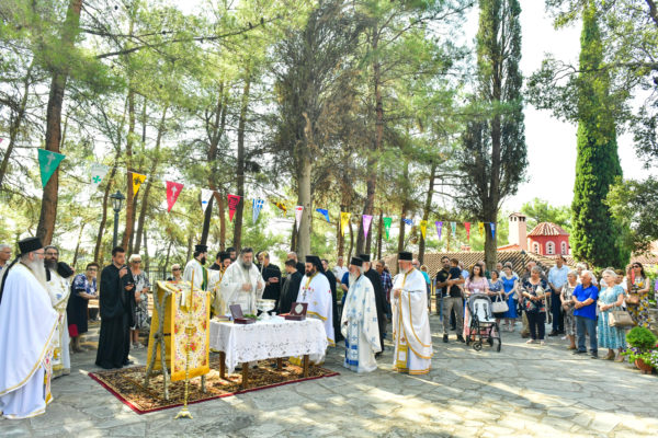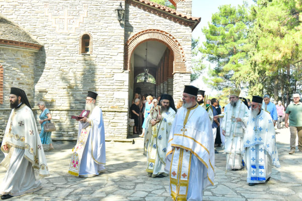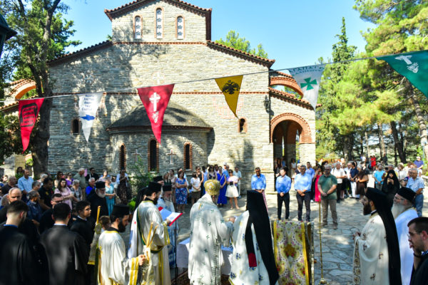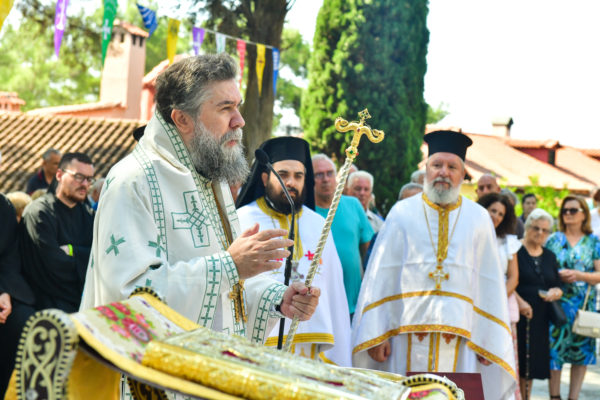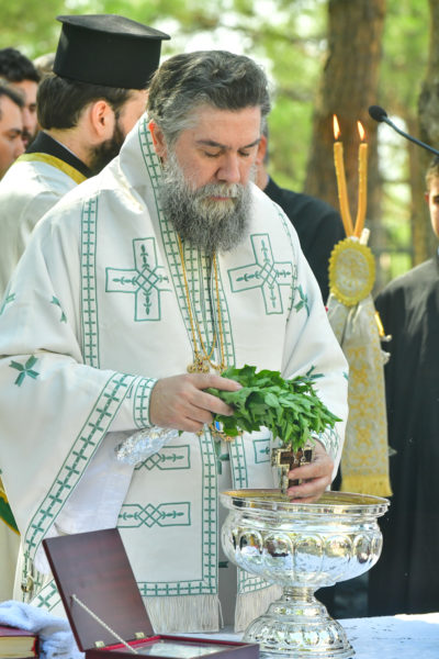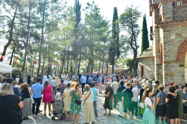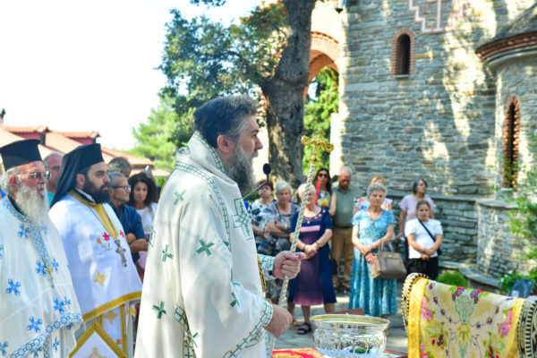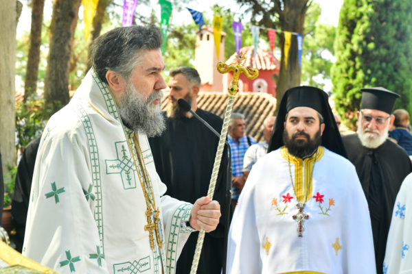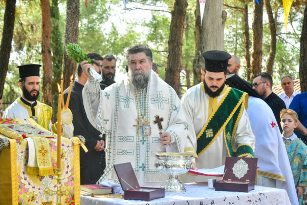 Ακολούθως, στον προαύλιο χώρο της ιεράς Μονής τελέσθηκε η ακολουθία του Αγιασμού, στο τέλος της οποίας, ο Σεβ. Ποιμενάρχης της Σερραϊκής Εκκλησίας κ. Θεολόγος, ομίλησε με δυνατό, αφυπνιστικό και πύρινο τρόπο στο πυκνότατο εκκλησίασμα, εμπνεόμενος από τον πάντοτε επίκαιρο λόγο του Προφ. Ηλιού, όπως αυτός είναι αποθησαυρισμένος στο παλαιοδιαθηκικό ανάγνωσμα: «Ἕως πότε ὑμεῖς χωλανεῖτε ἐπ᾿ ἀμφοτέραις ταῖς ἰγνύαις; εἰ ἔστι Κύριος ὁ Θεός, πορεύεσθε ὀπίσω αὐτοῦ· εἰ δὲ ὁ Βάαλ, πορεύεσθε ὀπίσω αὐτοῦ» (Βασ. Γ’ 18,21), υπογραμμίζοντας μεταξύ άλλων και τα εξής: