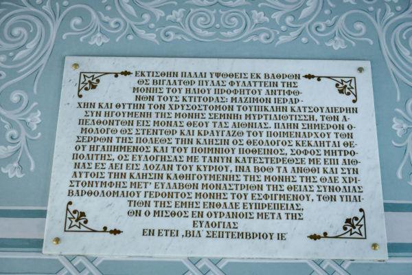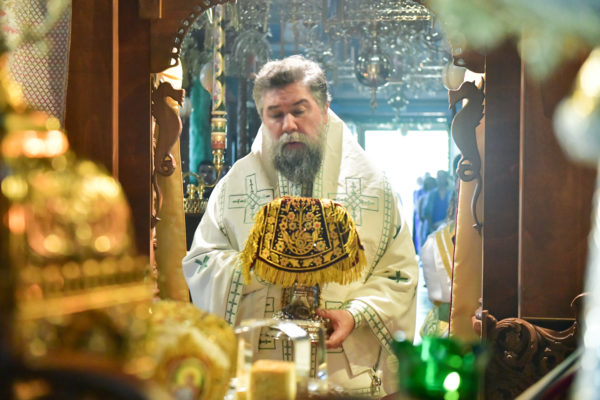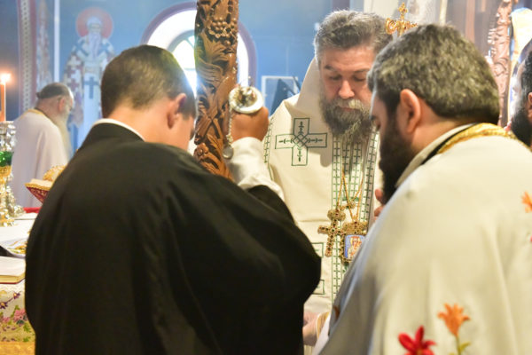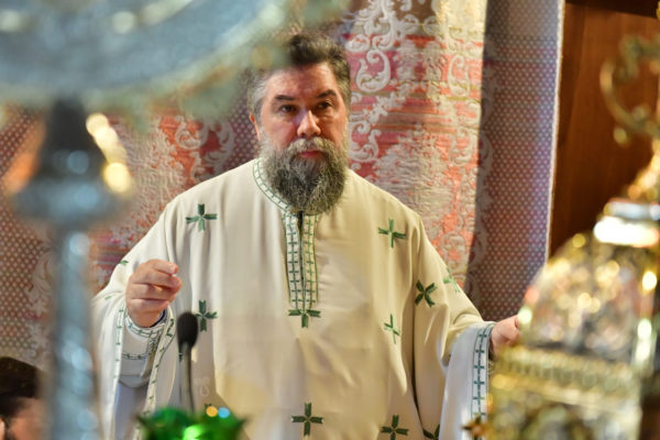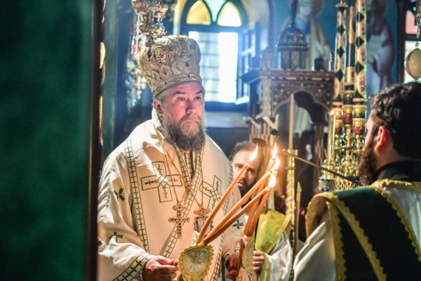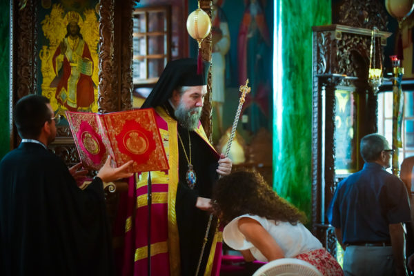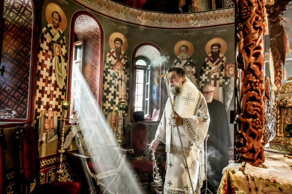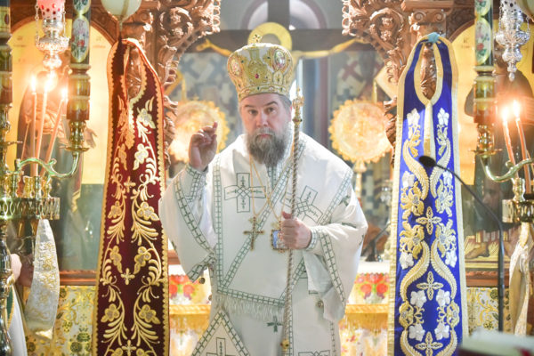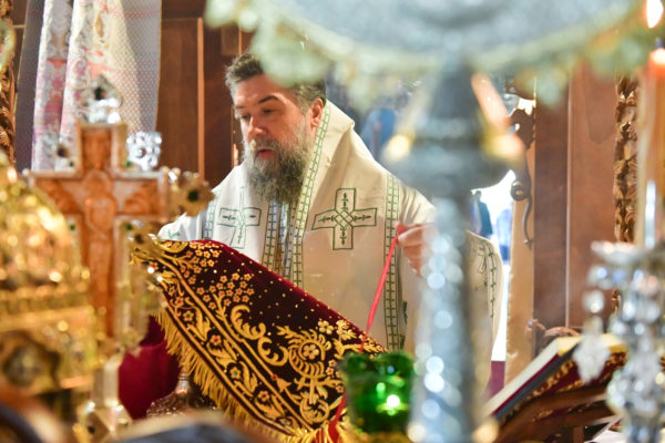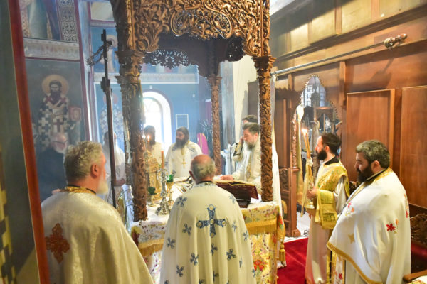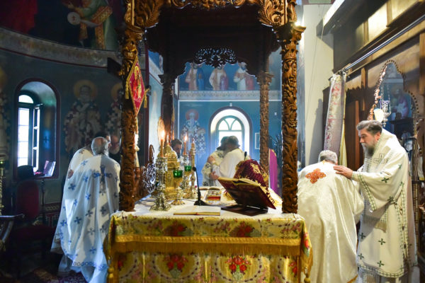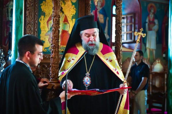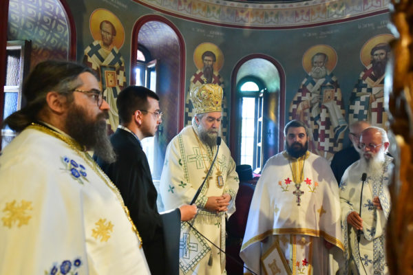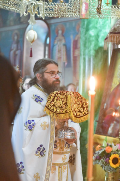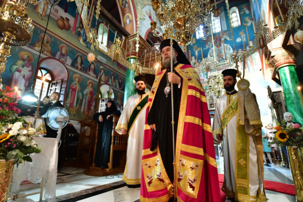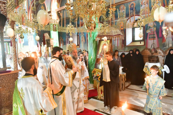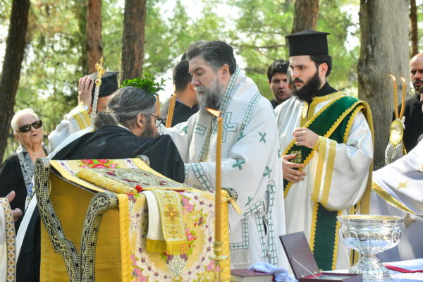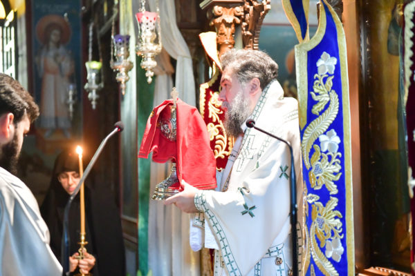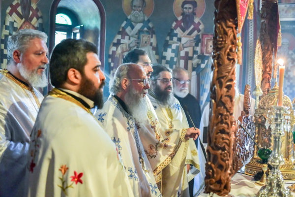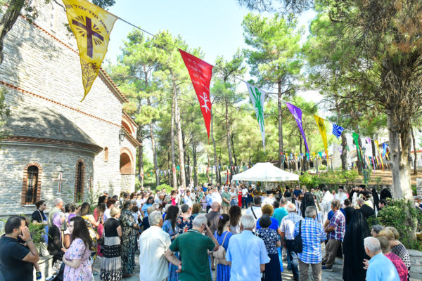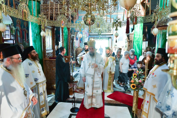 Ακολούθως, στον προαύλιο χώρο της ιεράς Μονής τελέσθηκε η ακολουθία του Αγιασμού, στο τέλος της οποίας, ο Σεβ. Ποιμενάρχης της Σερραϊκής Εκκλησίας κ. Θεολόγος, ομίλησε με δυνατό, αφυπνιστικό και πύρινο τρόπο στο πυκνότατο εκκλησίασμα, εμπνεόμενος από τον πάντοτε επίκαιρο λόγο του Προφ. Ηλιού, όπως αυτός είναι αποθησαυρισμένος στο παλαιοδιαθηκικό ανάγνωσμα: «Ἕως πότε ὑμεῖς χωλανεῖτε ἐπ᾿ ἀμφοτέραις ταῖς ἰγνύαις; εἰ ἔστι Κύριος ὁ Θεός, πορεύεσθε ὀπίσω αὐτοῦ· εἰ δὲ ὁ Βάαλ, πορεύεσθε ὀπίσω αὐτοῦ» (Βασ. Γ’ 18,21), υπογραμμίζοντας μεταξύ άλλων και τα εξής: