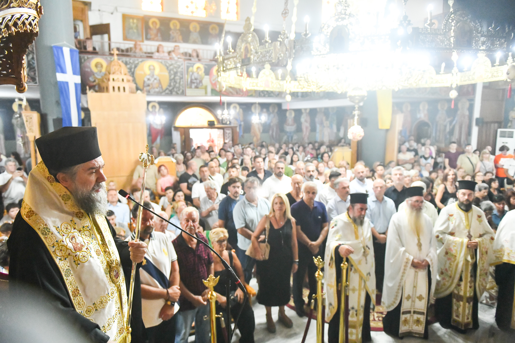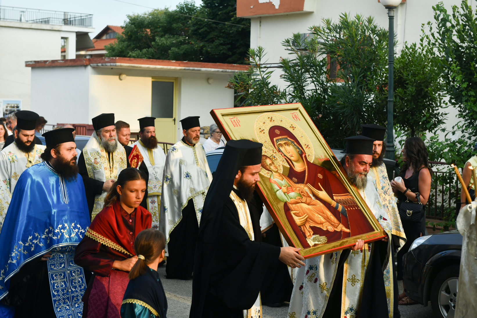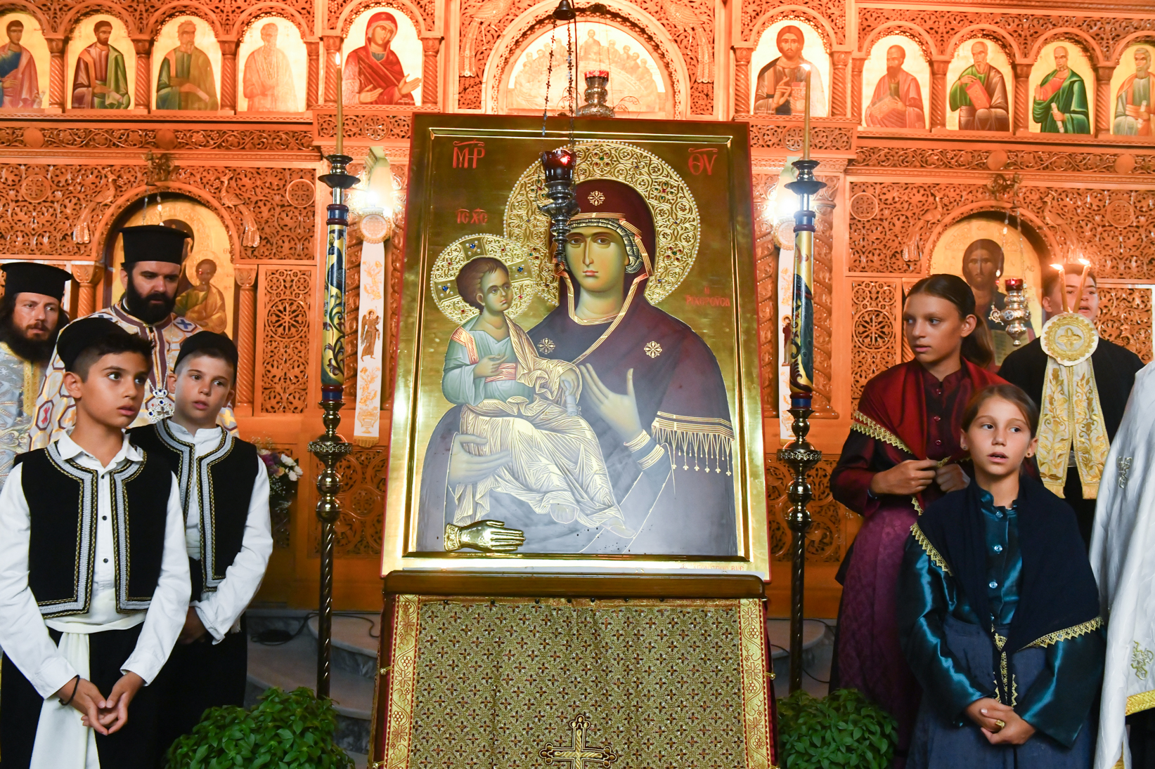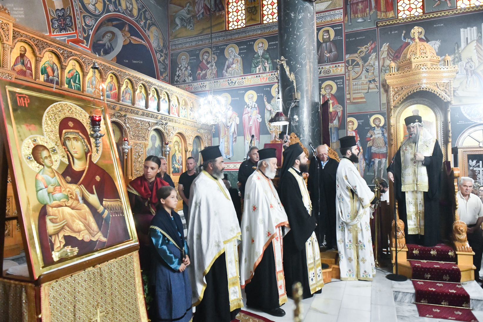 «Βηματίζοντες πνευματικώς στο πρώτο στάδιο της ευλογημένης περιόδου του ιερού Δεκαπενταυγούστου, ιδού ότι απόψε αξιωθήκαμε, από την χάρη της Παναγίας μας να υποδεχθούμε το σεπτό εικόνισμά Της σ’ αυτόν τον ιερό Ναό, με μία σεμνή τελετή, η οποία αποτελεί προπομπό του λαμπρού, συν Θεώ, τελεσθησομένου λειτουργικού εορτασμού της Κοιμήσεώς Της.