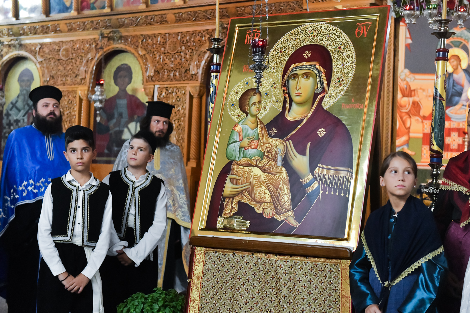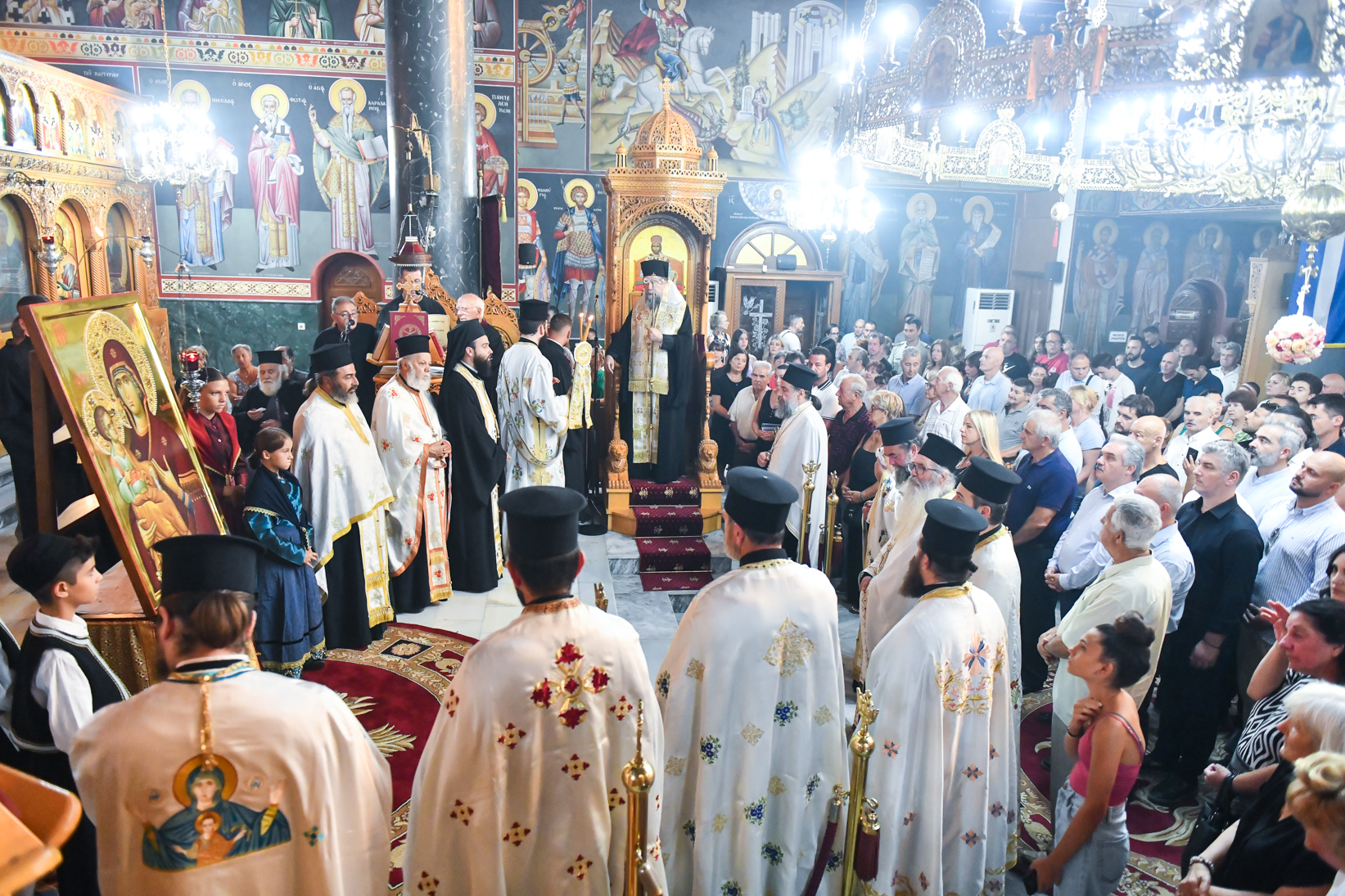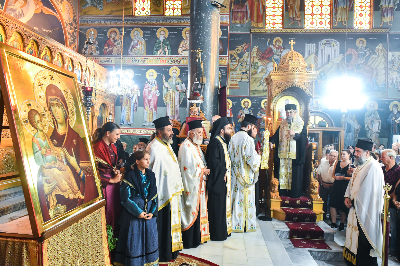 «Βηματίζοντες πνευματικώς στο πρώτο στάδιο της ευλογημένης περιόδου του ιερού Δεκαπενταυγούστου, ιδού ότι απόψε αξιωθήκαμε, από την χάρη της Παναγίας μας να υποδεχθούμε το σεπτό εικόνισμά Της σ’ αυτόν τον ιερό Ναό, με μία σεμνή τελετή, η οποία αποτελεί προπομπό του λαμπρού, συν Θεώ, τελεσθησομένου λειτουργικού εορτασμού της Κοιμήσεώς Της.