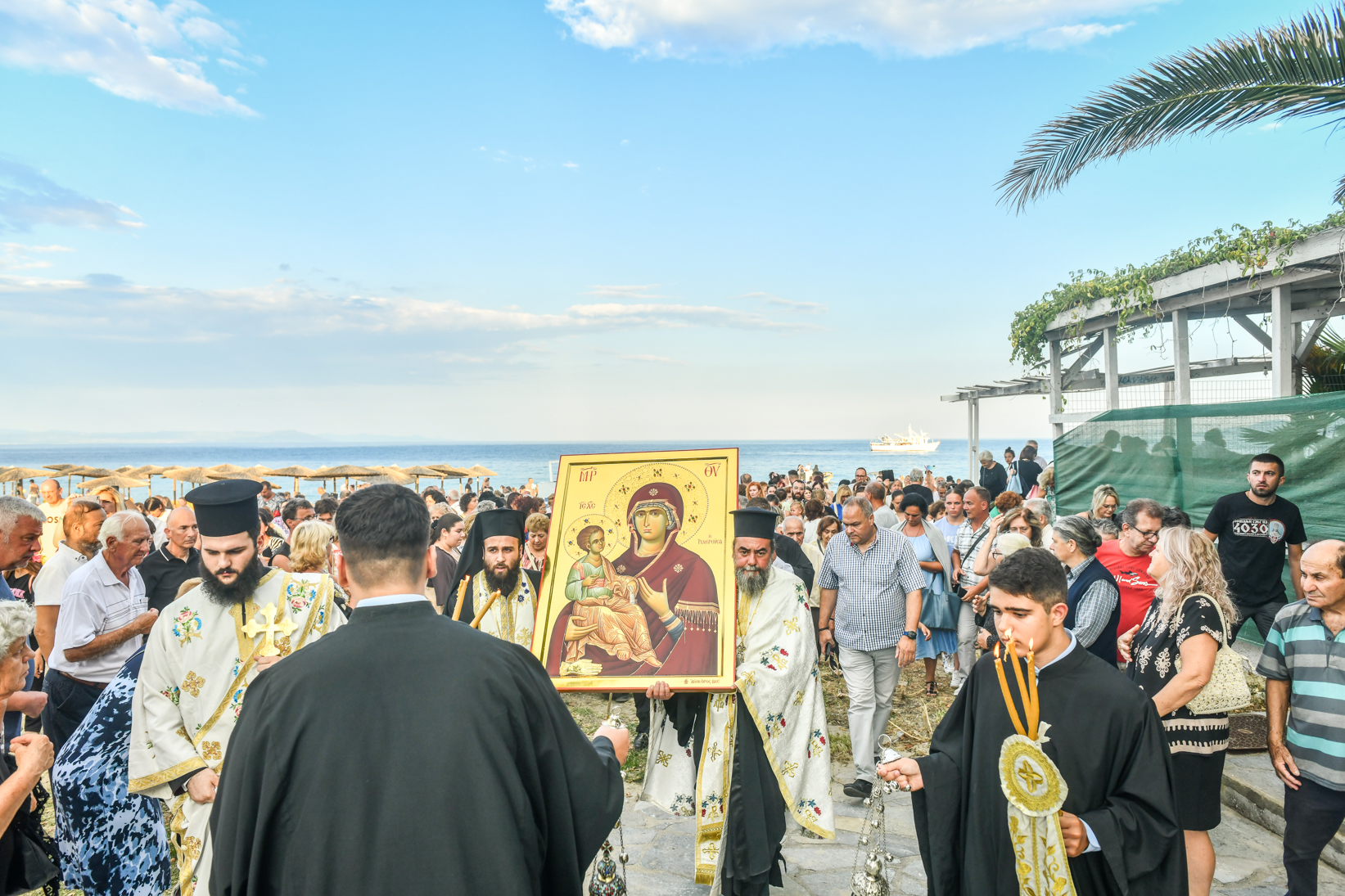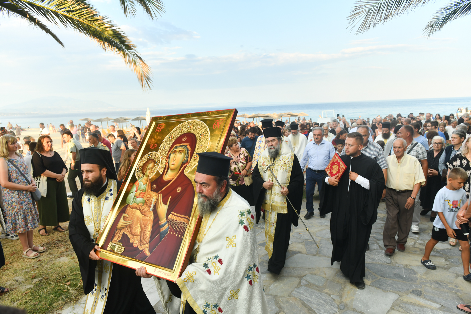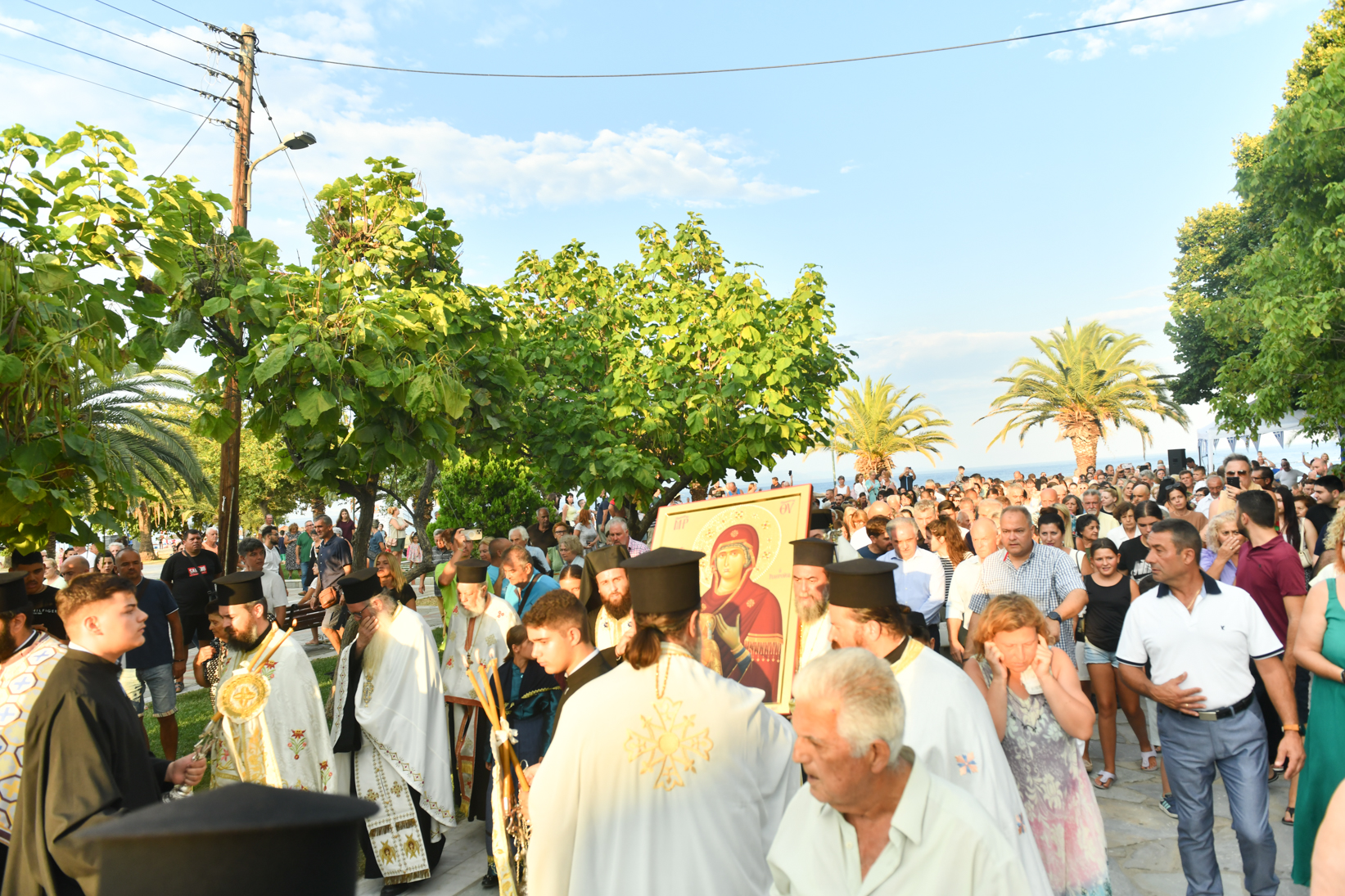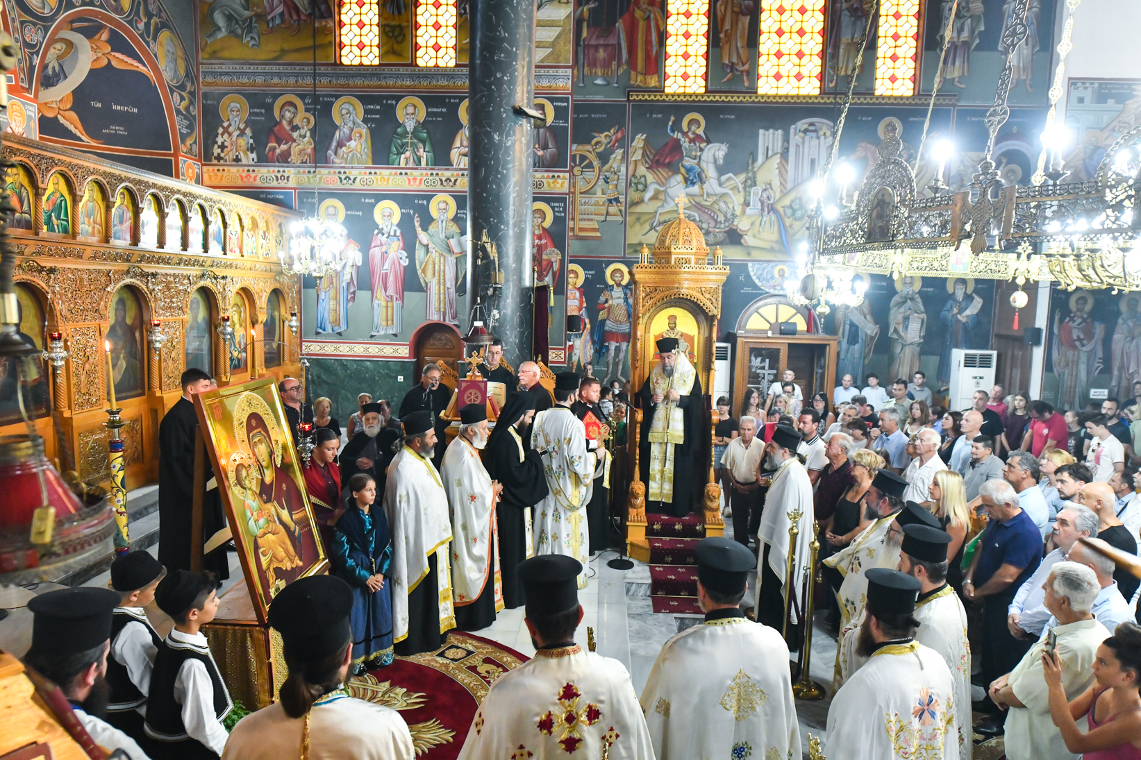«Βηματίζοντες πνευματικώς στο πρώτο στάδιο της ευλογημένης περιόδου του ιερού Δεκαπενταυγούστου, ιδού ότι απόψε αξιωθήκαμε, από την χάρη της Παναγίας μας να υποδεχθούμε το σεπτό εικόνισμά Της σ’ αυτόν τον ιερό Ναό, με μία σεμνή τελετή, η οποία αποτελεί προπομπό του λαμπρού, συν Θεώ, τελεσθησομένου λειτουργικού εορτασμού της Κοιμήσεώς Της.