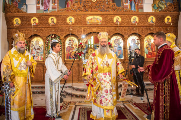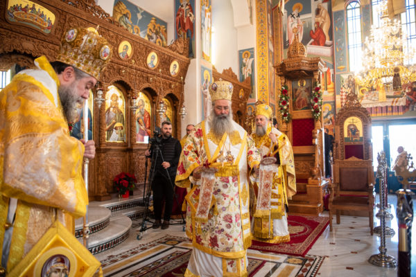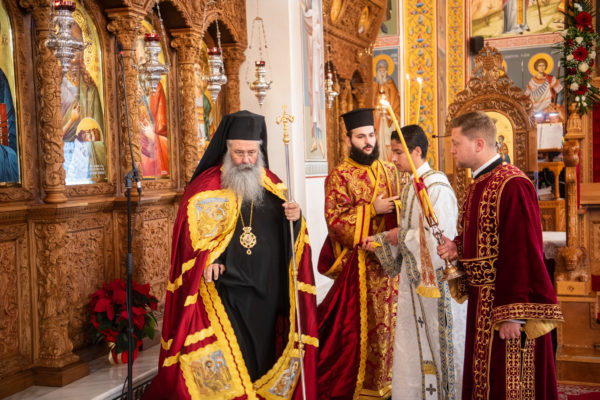 Στον εορτάζοντα, νεόδμητο ιερό Ναό, επ’ ονόματι του Αγ. Σπυρίδωνος, Επισκόπου Τριμυθούντος, στην συνοικία Σιγής – Νέας Κηφισιάς Σερρών, τελέσθηκε πανηγυρική, πολυαρχιερατική θεία Λειτουργία προεξάρχοντος του Σεβ. Μητροπολίτου Κίτρους, Κατερίνης και Πλαταμώνος κ. Γεωργίου και συνιερουργησάντων των Σεβ. Μητροπολιτών Τρίκκης, Γαρδικίου και Πύλης κ. Χρυσοστόμου και Σερρών και Νιγρίτης κ. Θεολόγου, σήμερα, Πέμπτη 12 Δεκεμβρίου, ημέρα κατά την οποία, η αγία Ορθόδοξος Εκκλησία τιμά λειτουργικώς την πανσεβάσμιο μνήμη του μεγάλου προμάχου της πίστεώς μας, θαυματουργού Αγίου Σπυρίδωνος.