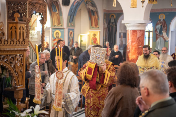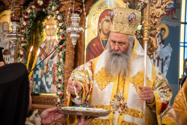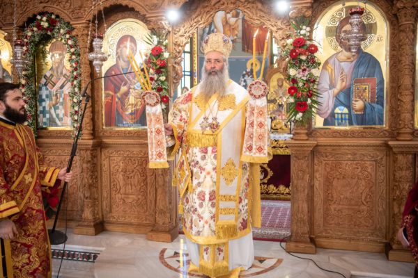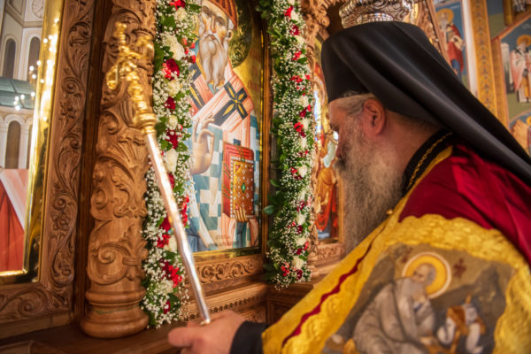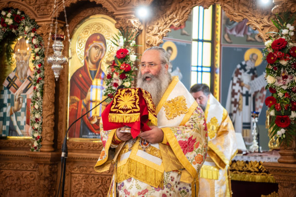 Προ της απολύσεως της πανηγυρικής θ. Μυσταγωγίας, ο Σεβ. Μητροπολίτης Κίτρους κ. Γεώργιος, εκήρυξε τον θείο λόγο, αναφερόμενος με γλαφυρότητα και θεολογική ενάργεια, στον βίο του μεγάλου εορταζομένου Ιεράρχουκαι στη ζείδωρη χάρη των αγίων, καθώς και στη δύναμη της πίστεως, προτρέποντας τους πιστούς να μην χάνουν την ελπίδα και την αισιοδοξία τους, έχοντας βαθιά πίστη στον Σωτήρα και Λυτρωτή Χριστό.