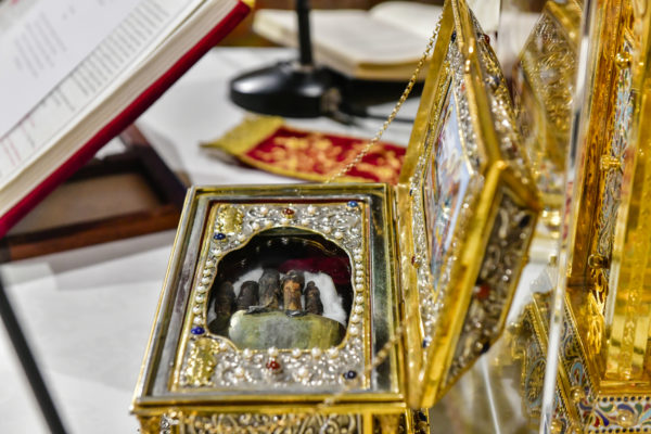 Το άφθορο λείψανο της πανευφήμου μάρτυρος, εδωρήθη το έτος 1787, υπό του Μητροπολίτου Βοδενών (Εδέσσης) κυρού Τιμοθέου, στον προαναφερθέντα ιστορικό ιερό Ναό, που μνημονεύεται στην πόλη των Σερρών, από τον 12ο αιώνα μ.Χ. και έκτοτε αποτελεί για την πόλη και την Μητρόπολη των Σερρών, μόνιμο και απτό σημείο αγιασμού, άμισθο ιατρείο ψυχών και σωμάτων, ακένωτο δοχείο, χωρητικό και παρεκτικό της θείας χάριτος.