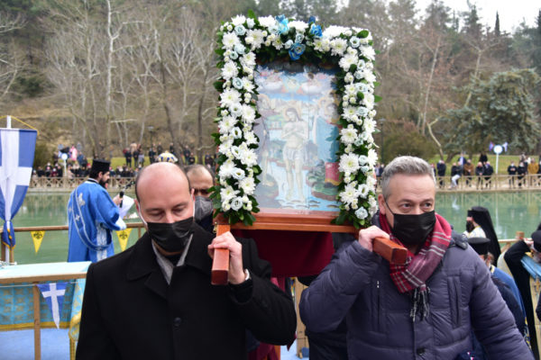 Ακολούθως, στις 11:00 το πρωί, στην τεχνητή λίμνη της κοιλάδος των Αγ. Αναργύρων Σερρών, τελέσθηκε ιεροπρεπώς από τον Σεβ. κ. Θεολόγο, με προσεκτική τήρηση όλων των υγειονομικών μέτρων, που συνιστώνται από τους ειδήμονες, για τους εξωτερικούς χώρους, ηιερά τελετή της καταδύσεως του Τιμ. Σταυρού και του αγιασμού των υδάτων.