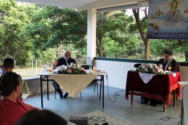 Την ως είρηται Σύναξη άνοιξε ο υπεύθυνος λειτουργίας της Κατασκηνώσεως, πανοσιολ. Αρχιμανδρίτης π. Νικήτας Χαλέμης, ο οποίος αφού ευχαρίστησε υιϊκώς τον Σεβασμιώτατο κ. Θεολόγο, για την ιδιαίτερη αυτή ευλογία, το ανύστακτο ενδιαφέρον και την πατρική του μέριμνα για την εύρυθμη λειτουργία της Κατασκηνώσεως, καλωσόρισε τα 50 και πλέον στελέχη και τους προσκεκλημένους εκλεκτούς ομιλητές: α) αιδεσιμολ. Πρωτοπρεσβύτερο π. Δημήτριο Κατούνη, κληρικό της Ιεράς Μητροπόλεως Δημητριάδος και Αλμυρού, έμπειρο και λίαν αποτελεσματικό στέλεχος των εκκλησιαστικών Κατασκηνώσεων της τοπικής Εκκλησίας της Δημητριάδος, β) δ. Στυλιανή Νικήσιανλη, εκπαιδευτικό και μέλος του Γραφείου Νεότητος της Σερραϊκής Εκκλησίας, γ) κ. Κυριακό Ασίκογλου, ψυχολόγο, οι οποίοι ανέπτυξαν με ωραίο και δυνατό λόγο πολύ ενδιαφέρουσες εισηγήσεις με κεντρικό άξονα αναφοράς την «Προσωπικότητα και το έργο του στελέχους των εκκλησιαστικών Κατασκηνώσεων» καθώς και δ) τον κ. Θεοφάνη Παπαευστρατίου, διασώστη Ε.Κ.Α.Β. Σερρών, ο οποίος παρουσίασε με την συμμετοχή των παρευρισκομένων διαδραστικές ασκήσεις αντιμετωπίσεως εκτάκτων υγειονομικών αναγκών.