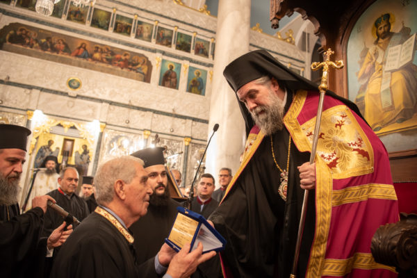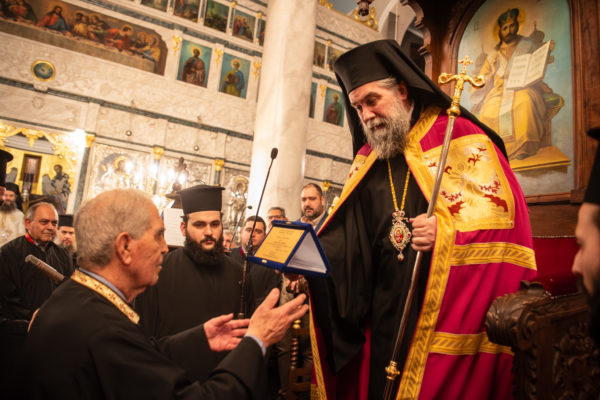 Η αποψινή προσγινομένη τιμή, προσφέρει, μία αρίστη και πρόσφορη αφορμή σε όλους μας, για να εκφράσουμε εγκάρδιες, συγχαρητήριες ευχές και προσρήσεις στον φιλόμουσο και φιλότιμο διάκονο της ιεροψαλτικής τέχνης και παραδόσεως, για την πολύτιμη και σεμνή προσφορά του στην τοπική μας Εκκλησία, αλλά και μία θαυμάσια ευκαιρία να τονισθεί, ότι η αγία Ορθόδοξος Εκκλησία μας είναι μεταξύ άλλων και διδασκαλείο των θείων αρετών και του ευχαριστιακού ήθους και μάλιστα, σε μία εποχή ανευχαρίστητη, αγνώμονα και στενόκαρδη, που έχει ξεχάσει να λέει το ‘’ευχαριστώ’’».