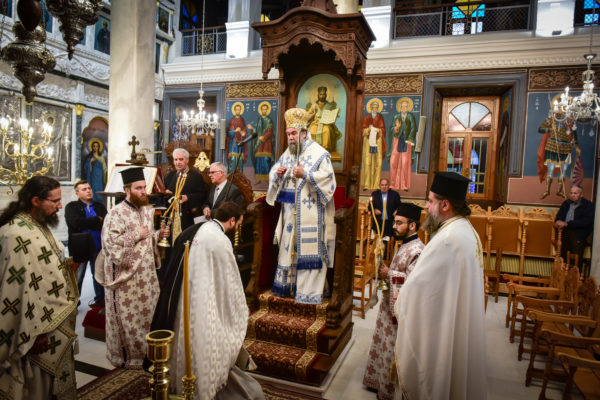 Προϊούσης της ιεράς ακολουθίας, ο Σεβασμιώτατος κ. Θεολόγος ερμήνευε στους πιστούς τα τελούμενα και ανέλυε τον θεολογικό συμβολισμό τους.