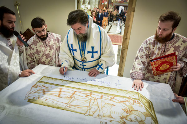 Μετά την τελετουργική ολοκλήρωση της τοποθετήσεως τεμαχίων μαρτυρικών λειψάνων εντός του «φυτού» του ιερού θυσιαστηρίου, της εκπλύσεως δι’ ύδατος αγιασμένου και αρωμάτων, της μυρώσεως και της ενδύσεως διά του «κατασαρκίου» και των λοιπών ιερών αμφίων της αγίας Τραπέζης και του καθαγιασμού διά του αγίου Μύρου των ιερών αντιμηνσίων, συνεχίσθηκε η Αρχιερατική θ. Λειτουργία, στην οποία συμπροσευχητικώς παρέστησαν μεταξύ άλλων και ο νυν Δήμαρχος Βισαλτίας κ. Αθανάσιος Μασλαρινός, η εψηφισμένη νέα Δήμαρχος Βισαλτίας κ. Ευανθία Πλιάκου, καθώς και πλήθος ευσεβών ενοριτών.