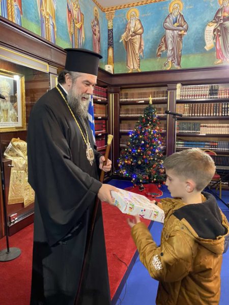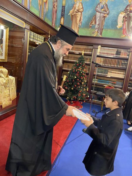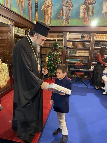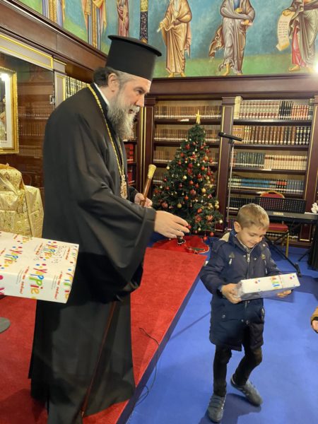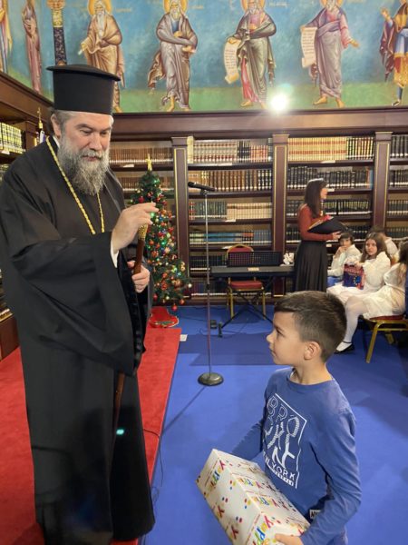 Συγκεκριμένως, στις 6:00 το απόγευμα, ο Σεβ. Μητροπολίτης Σερρών και Νιγρίτης κ. Θεολόγος καλωσόρισε τους μικρούς φίλους του Χριστού μαςστην εορταστική εκδήλωση, που διοργάνωσεη Σερραϊκή Εκκλησία στην αίθουσα «Αρχιεπίσκοπος Χριστόδουλος» της Εκκλησιαστικής Βιβλιοθήκης «Μυριόβιβλος» του «Μαξιμείου» Ιδρύματός της.Τα μικρά «αγγελούδια» της Νεανικής Χορωδίας «Αγγέλων Φωνές» της Ιεράς Μητροπόλεως Σερρών και Νιγρίτης, υπό την διεύθυνση της χοράρχου κ. Μ. Κουβακλή καθώς και όλα τα παιδιά έψαλαν τα κάλαντα στον πνευματικό τους Πατέρα και του ευχήθηκαν για τον καινούργιο χρόνο ευχαριστώντας τον με τον δικό τους τρόπο για την έμπρακτη αγάπη του στις οικογένειές τους.Ο Σεβασμιώτατος ομίλησε με πατρική στοργή στα παιδιά,προσέφεροντας σε όλα γλυκίσματα και τα πρωτοχρονιάτικα δώρα τους.