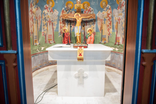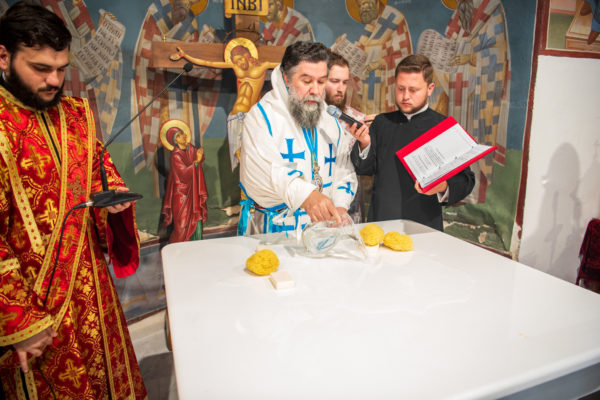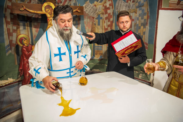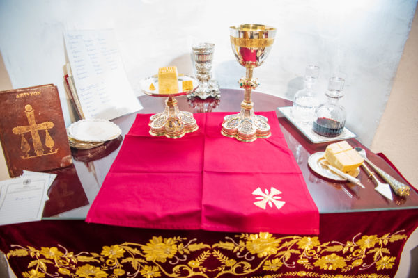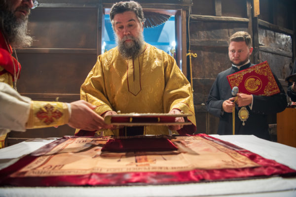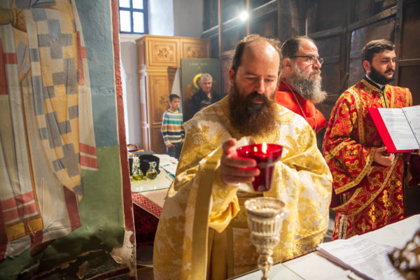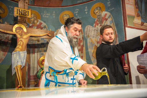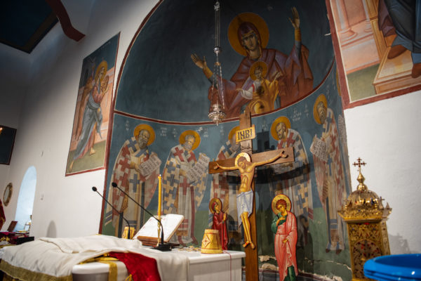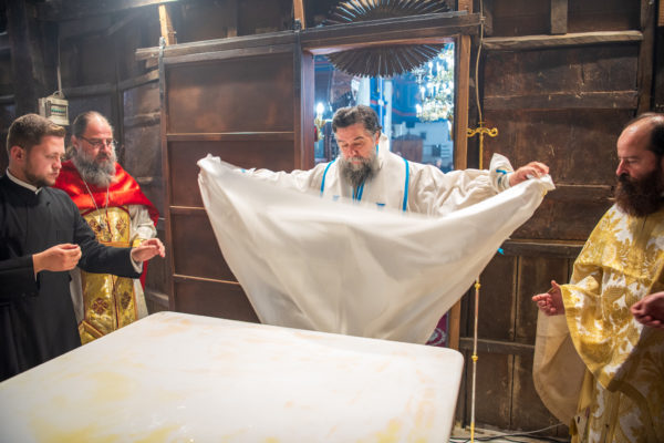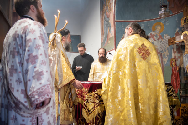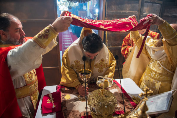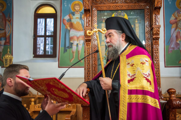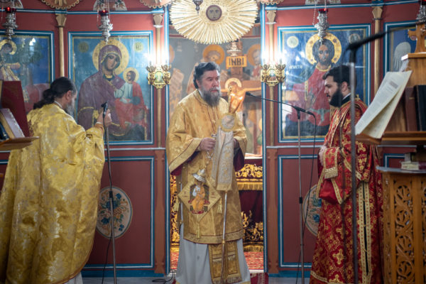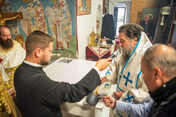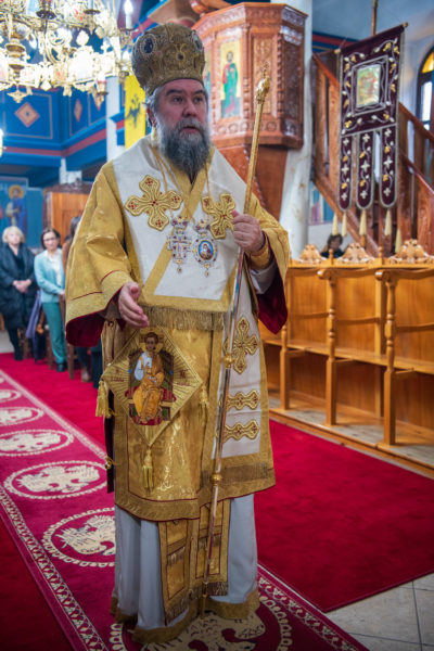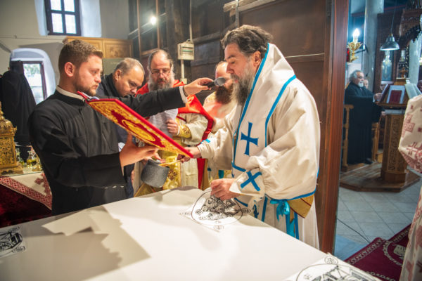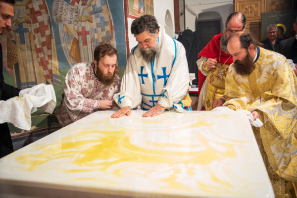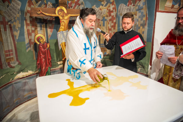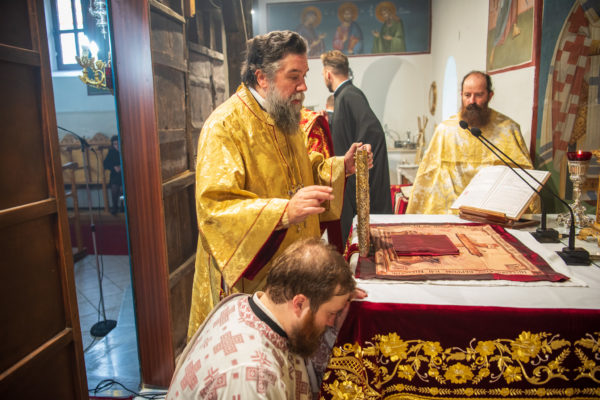 Κατά την διάρκεια δε της θ. Μυσταγωγίας, τελέσθηκε, συμφώνως προς την εκκλησιαστική τάξη, η ειδική ακολουθία «ἐπίσαλευθείσῃἁγίᾳΤραπέζῃ» του ως είρηται ιερού Ναού.Οι υλικές φθορές, τις οποίες επέφερε ο πανδαμάτωρ χρόνος, κατέστησαν επιτακτική την ανάγκη εκτεταμένων εργασιών εκ βάθρων ανακαινίσεως της αγίας Τραπέζης, αλλά και συντηρήσεως και ανακαινίσεως συνολικώς του παλαιού αυτού ιερού Ναού.Προϊούσης της ιεράς ακολουθίας, ο Σεβ. κ. Θεολόγος ερμήνευε στους πιστούς τα τελούμενα και ανέλυε τον θεολογικό συμβολισμό τους.