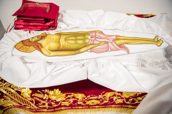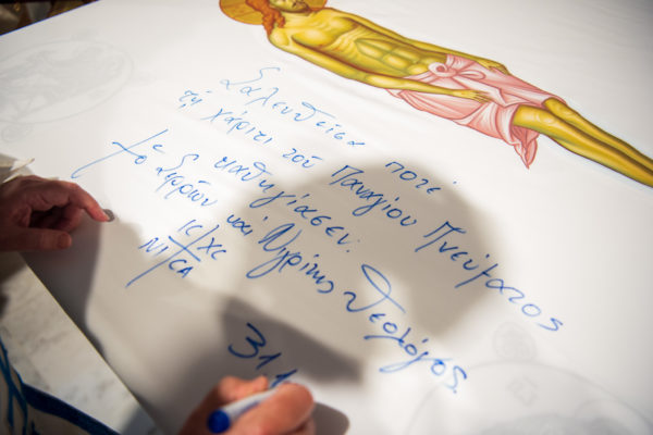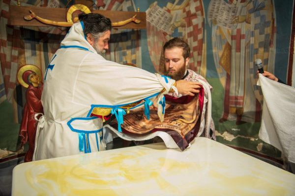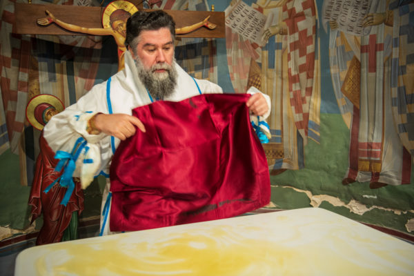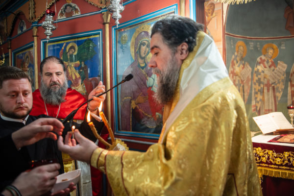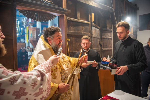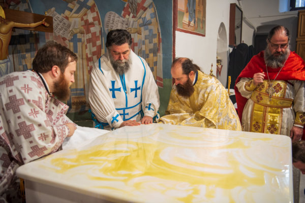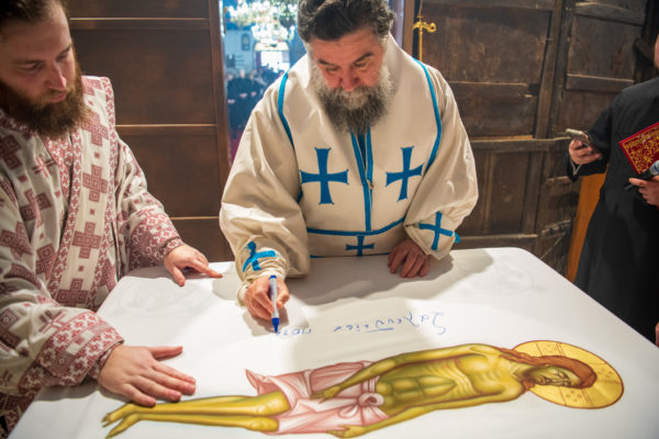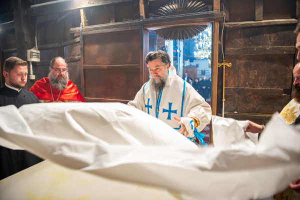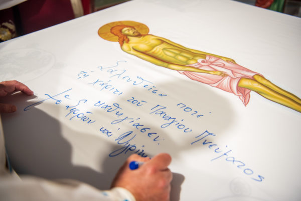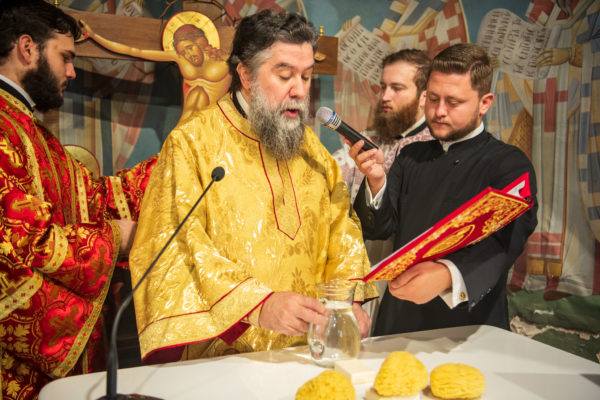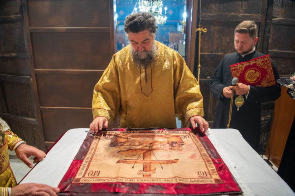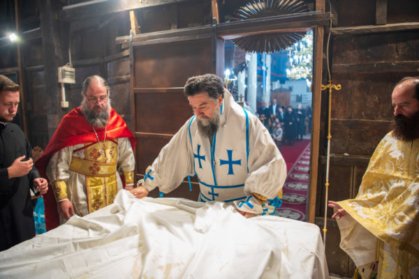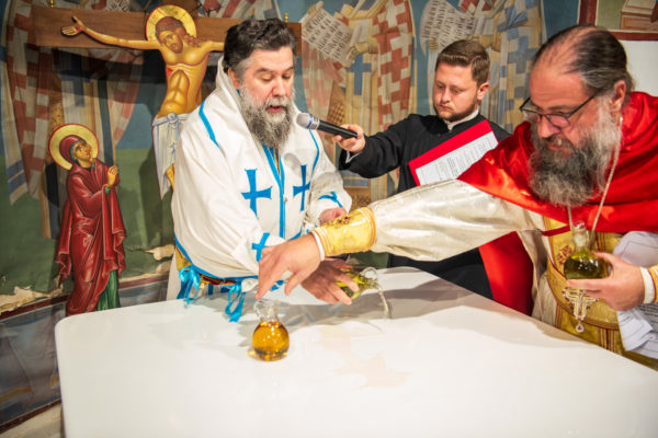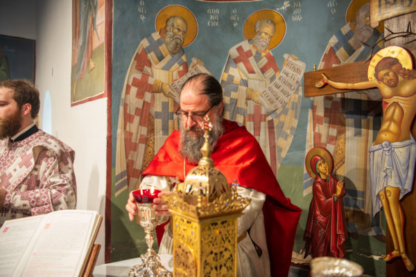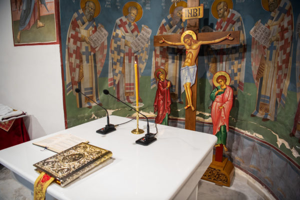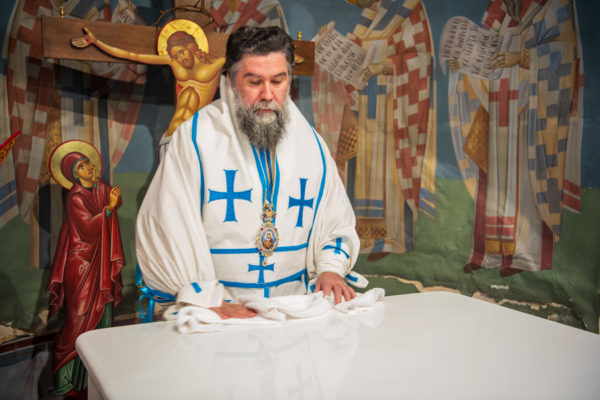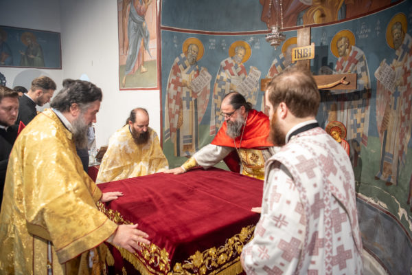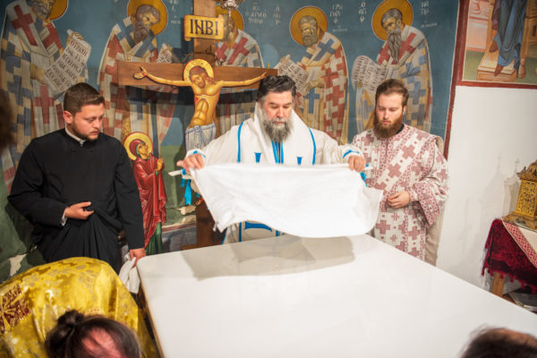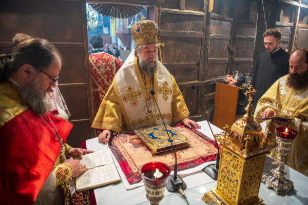 Κατά την διάρκεια δε της θ. Μυσταγωγίας, τελέσθηκε, συμφώνως προς την εκκλησιαστική τάξη, η ειδική ακολουθία «ἐπίσαλευθείσῃἁγίᾳΤραπέζῃ» του ως είρηται ιερού Ναού.Οι υλικές φθορές, τις οποίες επέφερε ο πανδαμάτωρ χρόνος, κατέστησαν επιτακτική την ανάγκη εκτεταμένων εργασιών εκ βάθρων ανακαινίσεως της αγίας Τραπέζης, αλλά και συντηρήσεως και ανακαινίσεως συνολικώς του παλαιού αυτού ιερού Ναού.Προϊούσης της ιεράς ακολουθίας, ο Σεβ. κ. Θεολόγος ερμήνευε στους πιστούς τα τελούμενα και ανέλυε τον θεολογικό συμβολισμό τους.