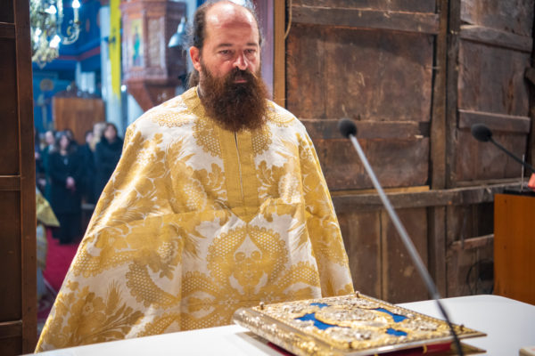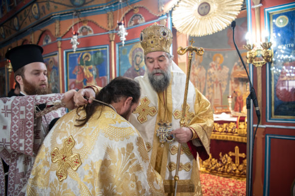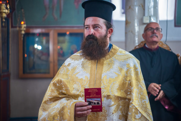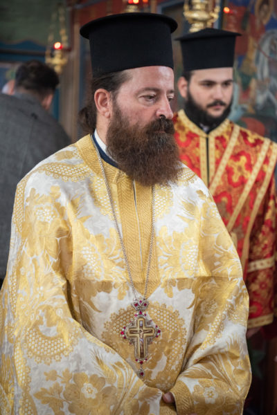 Τέλος, οΣεβασμιώτατος απένειμε το οφφίκιο του Σταυροφόρου Οικονόμου στον καλό εφημέριο του ιερού Ναού, π. Αλκιβιάδη Ζιώγαεπαινώντας με αυτό τον τρόπο την καρποφόρο ιερατική του διακονία, την κατά πάντα φιλότιμη ανάληψη και εκ πάσης επόψεως άριστη περάτωση του ιερού έργου της ανακαινίσεως του ιερού Ναού Αγ. Δημητρίου, αλλά και του συνεχούς εσωτερικού και εξωτερικού ευπρεπισμού του, όσο και τον ευγενέστατο λαό της Αρεθούσης, ο οποίος διά του ευλογημένου οικονομικού υστερήματος και του συγκινητικού ψυχικού περισσεύματός του στηρίζει πάντοτε όλα τα έργα της Εκκλησίας.