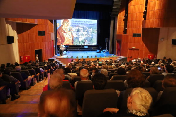 Στο πρώτο μέρος της εκδηλώσεως, την οποίαπαρουσίασεη εκπαιδευτικός κ. Αικατερίνη Θεμελίδου, ο αιδεσιμολ. Πρωτοπρεσβύτερος π. Ιορδάνης Θεμελίδης, Γεν. Διευθυντής του «Μαξιμείου» Ιδρύματος, ομίλησε με θέμα: «Το ιερό πρόσωπο της Υπεραγίας Θεοτόκου και η Εκκλησία, ως Μητέρα των πιστών».Ακολούθως, η εκπαιδευτικός-φιλόλογος κ. Θεοδώρα Τζιντζή-Βουτσά ομίλησε επιτυχώς, με θέμα: «Είσαι μητέρα, είσαι γη!».
