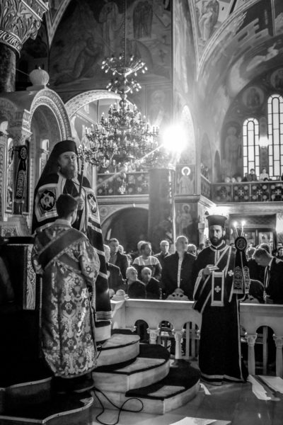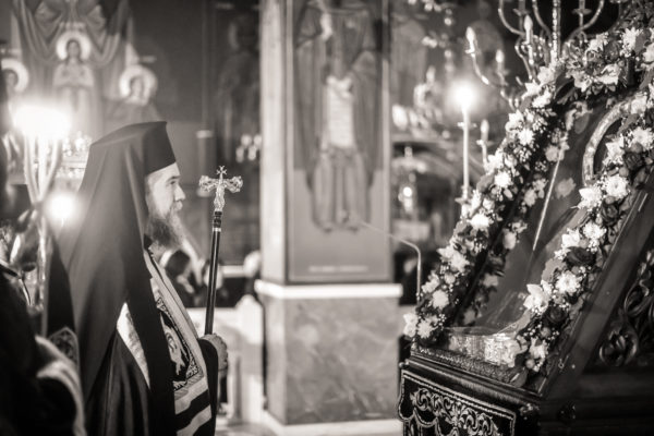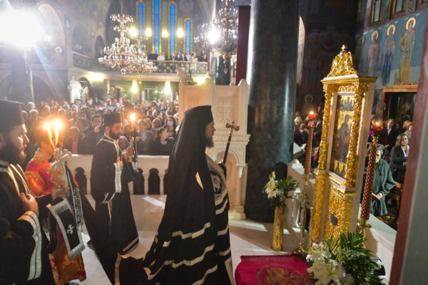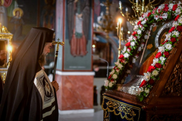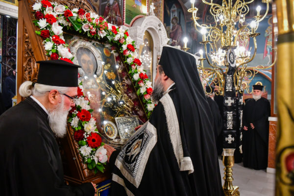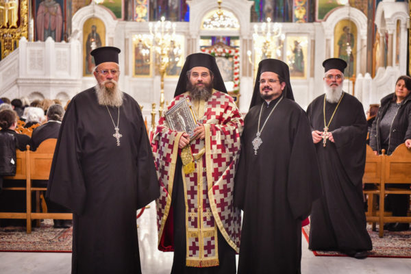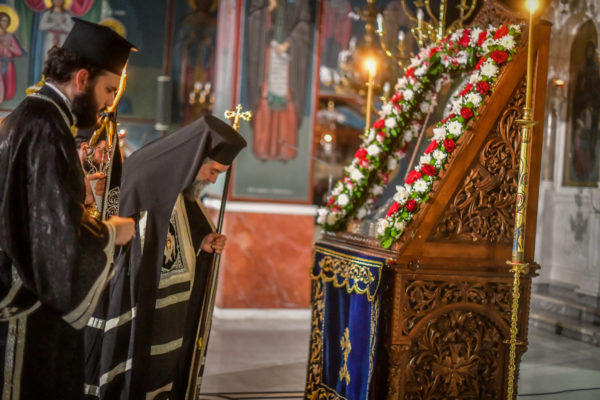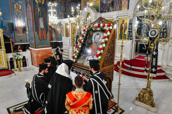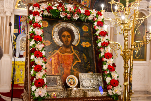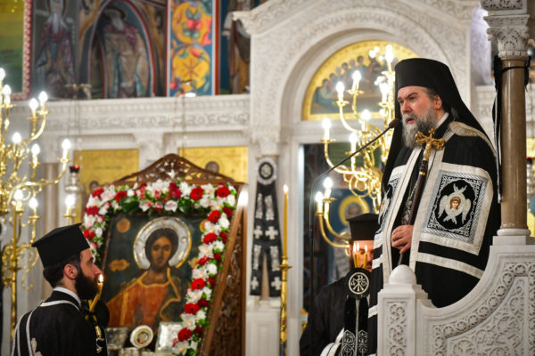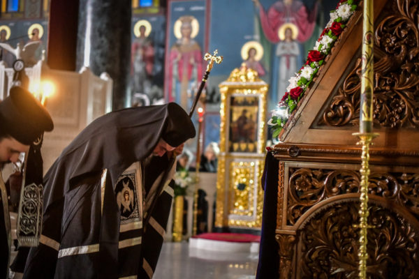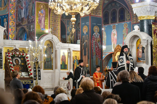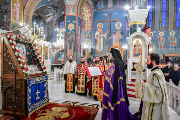 Νωρίς το απόγευμα, είχαν τοποθετηθεί στο κέντρο του Ιερού Μητροπολιτικού Ναού, η θαυματουργός αρχαία εικόνα του Κυρίου Παντοκράτορος, προερχομένη από το χωρίο των Στεφανινών της εκκλησιαστικής επαρχίας των Σερρών και χαριτόβρυτα αποτμήματα ιερών λειψάνων, προς προσκύνηση και πνευματική ενίσχυση του μεγάλου πλήθους πιστών, που είχε κυριολεκτικώς κατακλύσει τον Μητροπολιτικό Ναό των Σερρών.