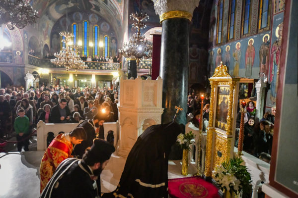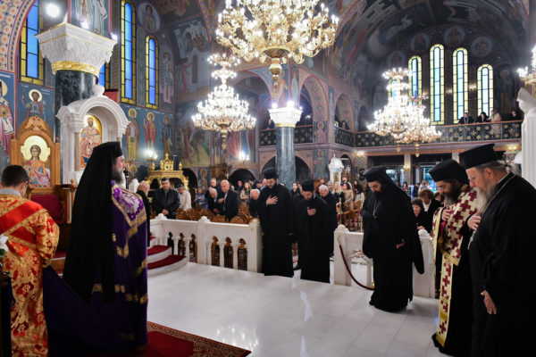 Με Αρχιερατική χοροστασία και εποικοδομητική ομιλία του Σεβασμιωτάτου Μητροπολίτου Σερρών και Νιγρίτης κ. Θεολόγου τελέσθηκε το απόγευμα της Κυριακής της Τυρινής 17ης Μαρτίου 2024, στον Ιερό Μητροπολιτικό Ναό Παμμεγίστων Ταξιαρχών Σερρών, ο Α’ Κατανυκτικός Εσπερινός της αγίας και Μεγάλης Τεσσαρακοστής, με τους ωραιότατους ύμνους περί νηστείας, μετανοίας, ταπεινοφροσύνης και συγχωρητικότητος, που καλλιεργούν στην ψυχή των ευλαβών χριστιανών το αγωνιστικό φρόνημα και την αγάπη προς τον Νυμφίο Χριστό.