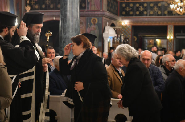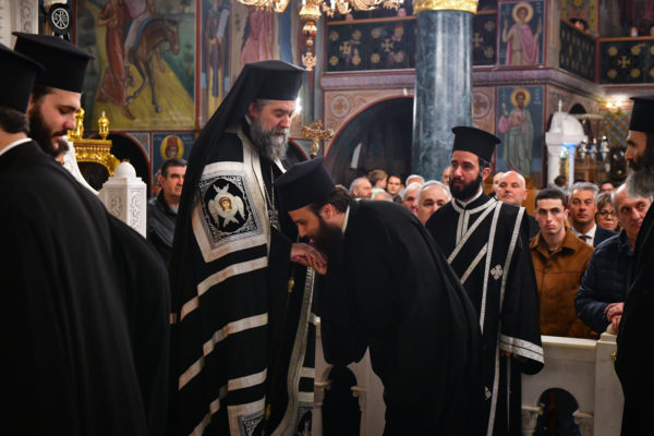 Στο τέλος, αναπέμφθηκε από τον Σεβασμιώτατο Μητροπολίτη κ. Θεολόγο, η συγχωρητική ευχή και πραγματοποιήθηκε, κατά το ιερόν έθος, ο ασπασμός της συγχωρήσεως, πριν την είσοδο στην αγία και Μεγάλη Τεσσαρακοστή, ο οποίος διήρκησε περί τις δυο περίπου ώρες.