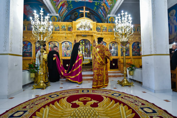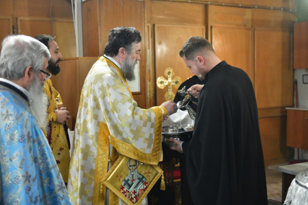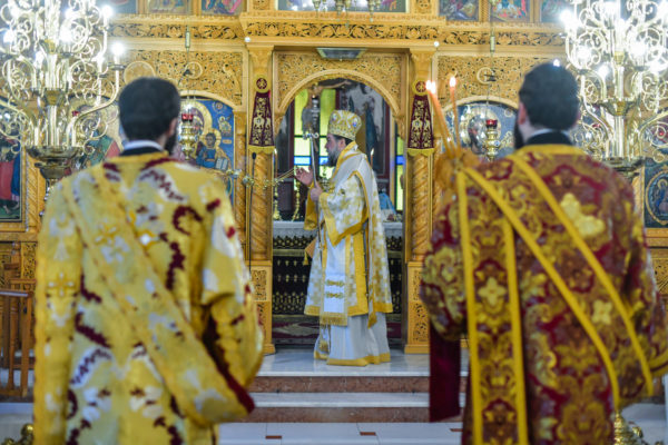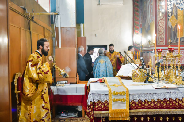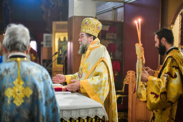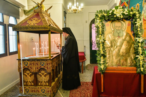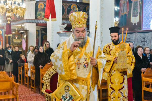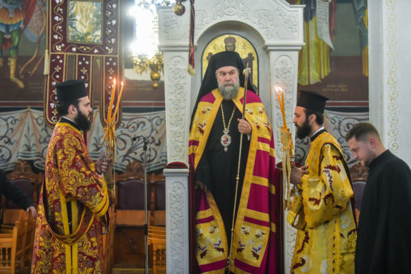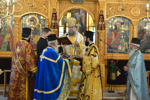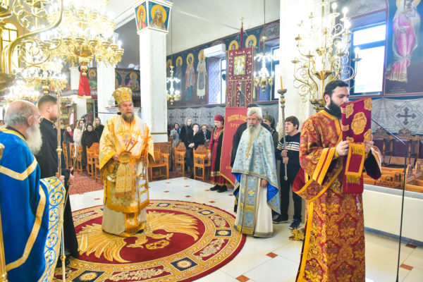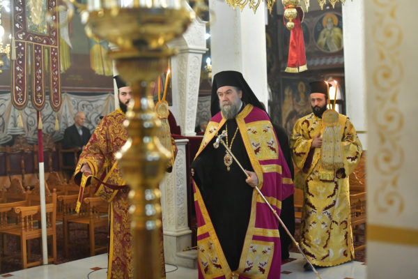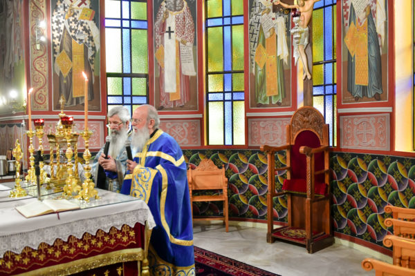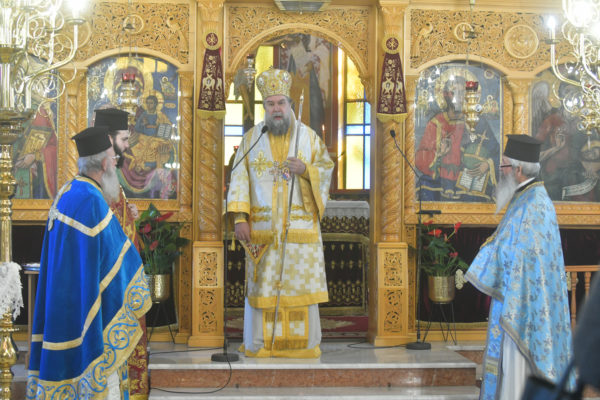 «Μας αξίωσε, αγαπητοί μου αδελφοί, το έλεος του αγίου Θεού, είπε ο Σεβασμιώτατος, να συναχθούμε και πάλιν στο Πανάγιο Όνομά Του, στην ευχαριστιακή αυτή λειτουργική Σύναξη της Εκκλησίας μας, για να τιμήσουμε λειτουργικώς την Σύναξη της αγιολέκτου ξυνωρίδος της Αλεξανδρινής Εκκλησίας, τους μεγίστους Πρωθιεράρχες, Αθανάσιο και Κύριλλο, τους εκκλησιαστικούς άνδρες και απλανείς διδασκάλους της αληθείας του Χριστού, τους προμάχους και υπερασπιστές της πίστεώς μας.