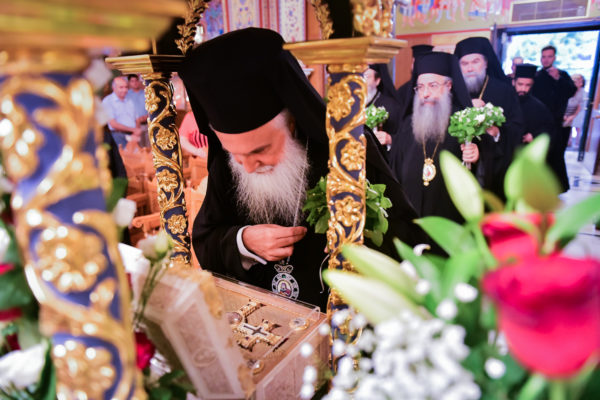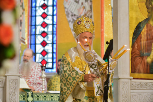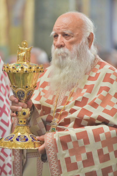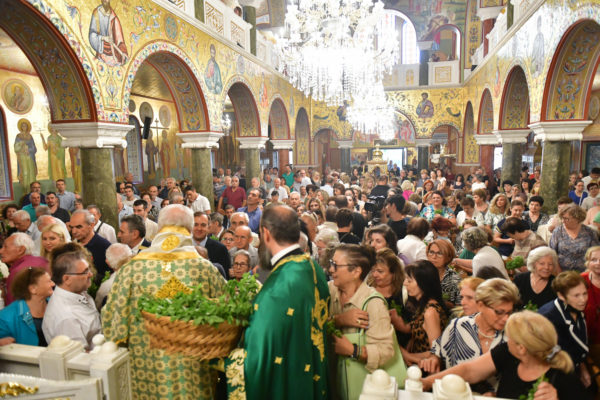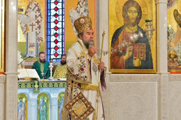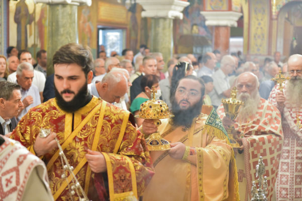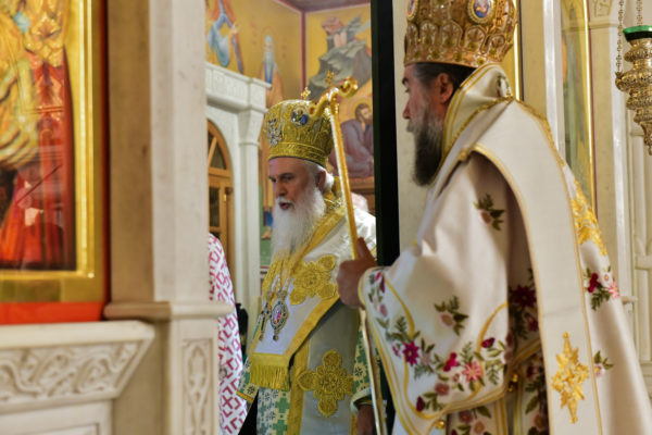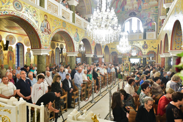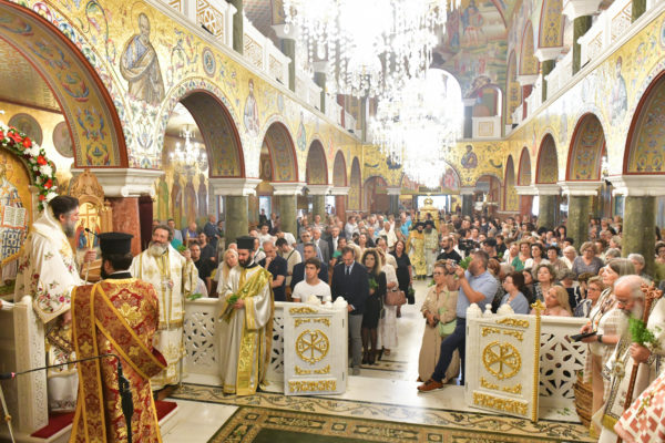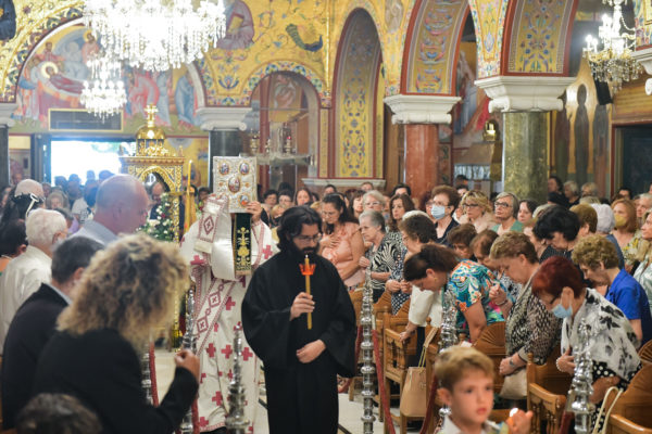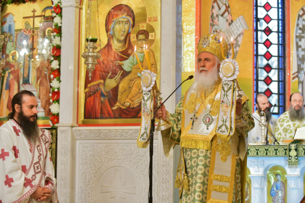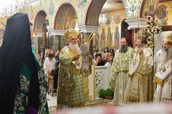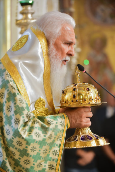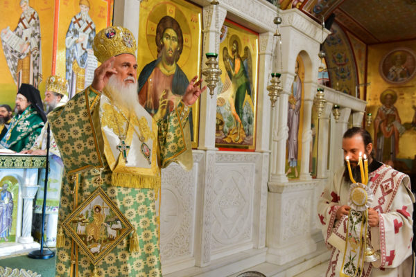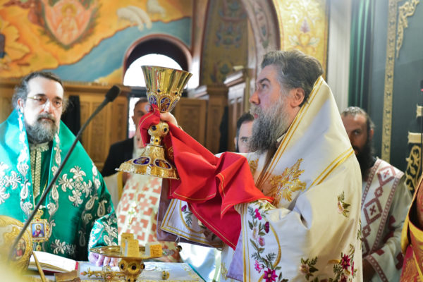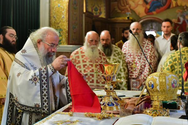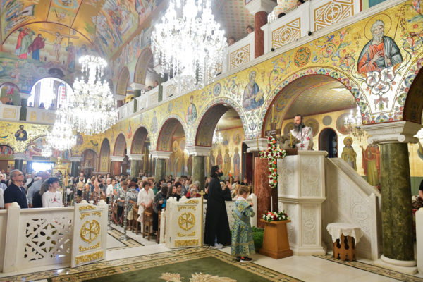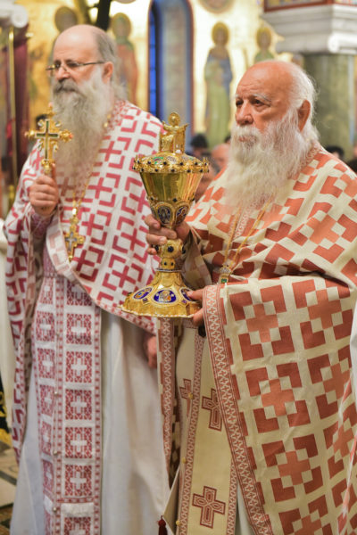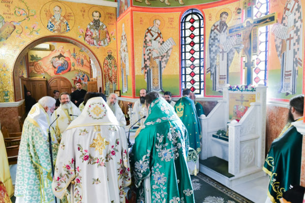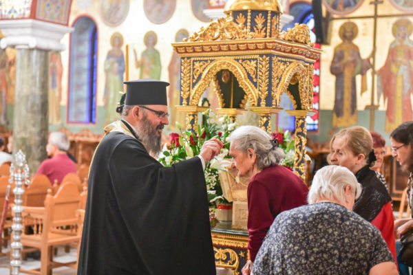 Στον πανηγυρίζοντα, ιερό Ναό Τιμίου Σταυρού Σερρών, όπου από της παρελθούσης Τετάρτης 11 Σεπτεμβρίου, ευρίσκονται αποτμήματα του Ζωομυρίστου Ξύλου και του αρράφου χιτώνος του Κυρίου Ιησού Χριστού, από την ιερά, Σταυροπηγιακή και Πατριαρχική Μονή Παντοκράτορος Αγ. Όρους, προς κοινό συνεορτασμό μετά της μεγαλωνύμου Δεσποτικής εορτής της παγκοσμίου Υψώσεως του Τιμίου και Ζωοποιού Σταυρού, τελέσθηκε σήμερα, Σάββατο 14 Σεπτεμβρίου, πανηγυρικό, Αρχιερατικό συλλείτουργο.