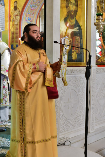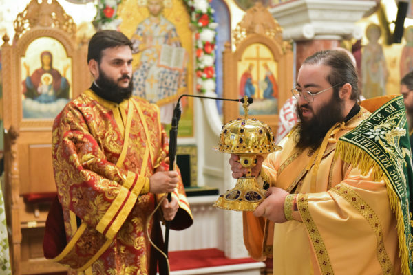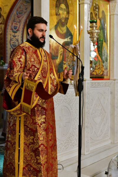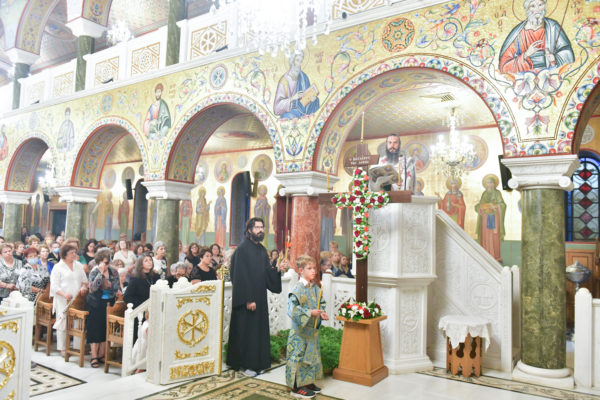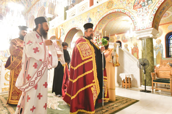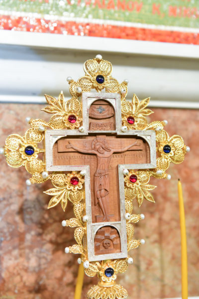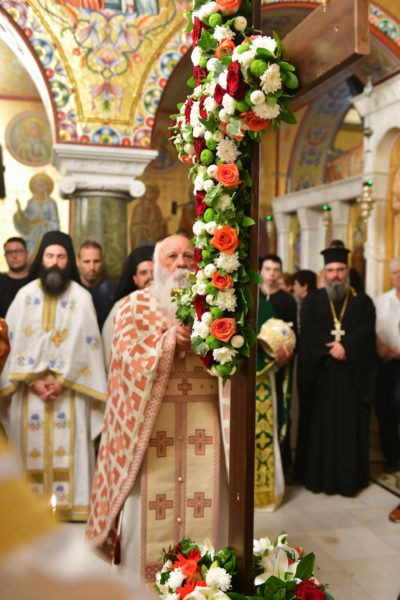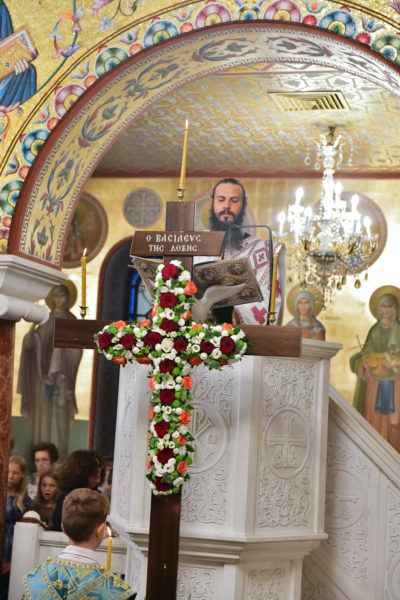 Προ της απολύσεως της θ. Μυσταγωγίας τελέσθηκε η ακολουθία της Υψώσεως του Τιμίου Σταυρού, από τον Καθηγούμενο της Μονής Ξενοφώντος, π. Αλέξιο.