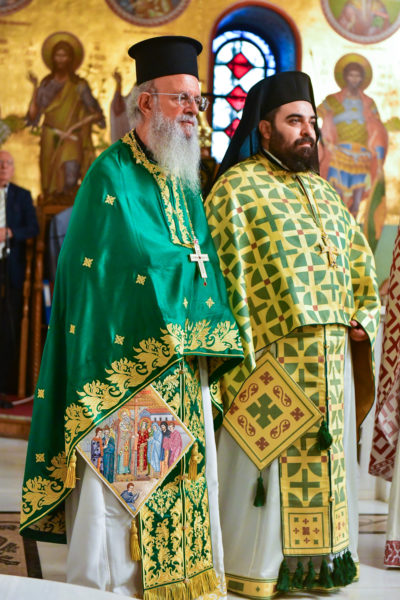 Συλλειτουργικώς επίσης συμμετείχανοι Καθηγούμενοι των Σταυροπηγιακών και Πατριαρχικών Μονών, οσίου Ξενοφώντος και Παντοκράτορος Αγ. Όρους, πανοσιολ. Αρχιμανδρίτες π. Αλέξιος και π. Γαβριήλ, ιερομόναχοι εξ Αγ. Όρους και κληρικοί της Εκκλησίας των Σερρών. Μεταξύ του πολυπληθούς εκκλησιάσματος, το οποίο, κυριολεκτικώς κατέκλισε τον ιερό Ναό, ήταν και οι Βουλευτές Σερρών κ. κ. Αν. Χατζηβασιλείου, Φ. Αραμπατζή και Θ. Λεονταρίδης.