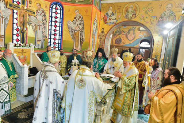 Συλλειτούργησαν ο Σεβ. Μητροπολίτης Λήμνου και Αγ. Ευστρατίου κ. Ιερόθεος, οι Θεοφ. Επίσκοποι Μεσαορίας κ. Γρηγόριος, εκ της Εκκλησίας της Κύπρου, Δορυλαίου κ. Δαμασκηνός και Μπουκόμπας και Δυτικής Τανζανίας κ. Χρυσόστομος και ο οικείος Ποιμενάρχης, Σεβ. Μητροπολίτης Σερρών και Νιγρίτης κ. Θεολόγος.
