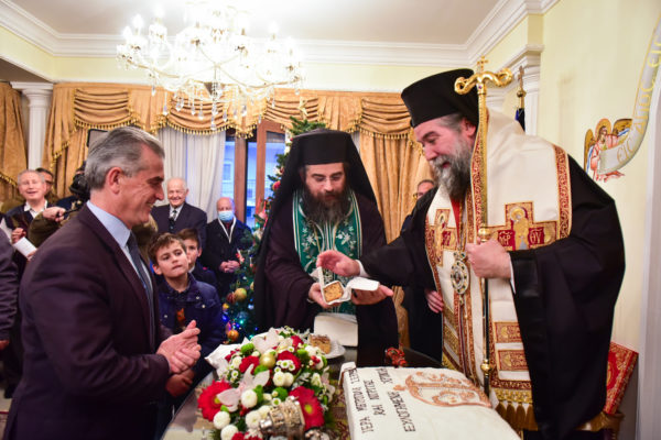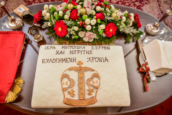 Την πατροπαράδοτη Αγιοβασιλειόπιτα ευλόγησε ο Σεβ. Μητροπολίτης Σερρών και Νιγρίτης κ. Θεολόγος, χθες, Κυριακή 31 Δεκεμβρίου 2023, στις 4:30 το απόγευμα, στο Επισκοπείο Σερρών, παρουσίατου ευαγούς κλήρου,του ΒουλευτούΣερρών κ. Θ. Λεονταρίδη, του Αντιπεριφερειάρχου Σερρών κ. Π. Σπυρόπουλου, των Δημάρχων Σερραίων κ. Β. Μητλιάγκα, Βισαλτίας κ. Ευαν. Πλιάκου και Εμμ. Παπά κ. Δ. Νότα, του Διοικητού του 10ου Συντάγματος ΠΖ κ. Αδ. Σαρρή, του Προέδρου του Εμπορικού και Βιομηχανικού Επιμελητηρίου Σερρών κ. Αθ. Μαλλιαρά, εκπροσώπων της Αστυνομικής Διευθύνσεως και της Πυροσβεστικής Υπηρεσίας Σερρών και λοιπών αρχών και του λαού του Θεού.