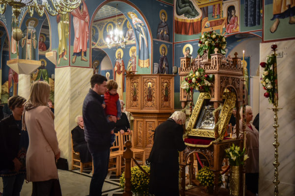 Στον εορτάζοντα ιερό Ναό Αγ. Δημητρίου Σερρών, όπου, από του παρελθόντος Σαββάτου 21 Οκτωβρίου 2023, ευρίσκεται προς προσκύνηση και κοινό συνεορτασμό μετά της ιεράς μνήμης του Αγ. μεγαλομάρτυρος Δημητρίου, η ιερά, σεβασμία και θαυματουργός εικόνα της Παναγίας «Φανερωμένης», από την παλαίφατη ιερά Μονή Κοιμ. Θεοτόκου «Βαθυρρύακος» Κομοτηνής, ιερούργησε, σήμερα Πέμπτη 26 Οκτωβρίου, ο Σεβ. Μητροπολίτης Σερρών και Νιγρίτης κ. Θεολόγος.