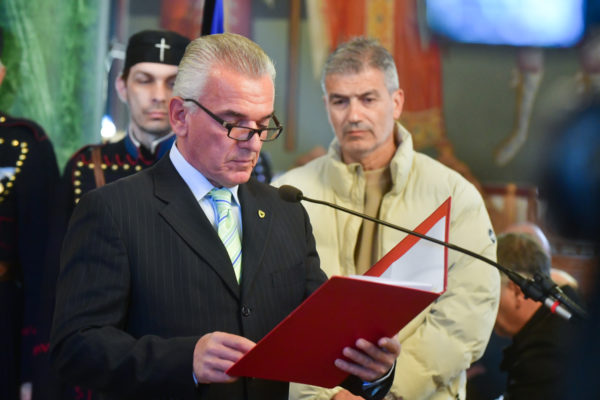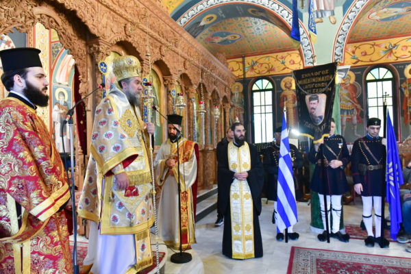 Προ της απολύσεως της θ. Μυσταγωγίας, τελέσθηκε η επίσημος Δοξολογία, στο τέλος της οποίας, ομίλησε για το νόημα της μεγάλης, διπλής εορτής, ο Αντιπρόεδρος της Ενώσεως Αποστράτων Αξιωματικών Στρατού Ν. Σερρών, Τχηςε.α., κ. Ελ. Καραγιαννίδης.