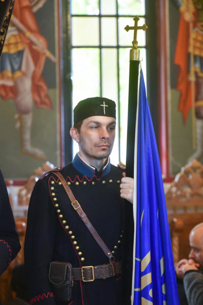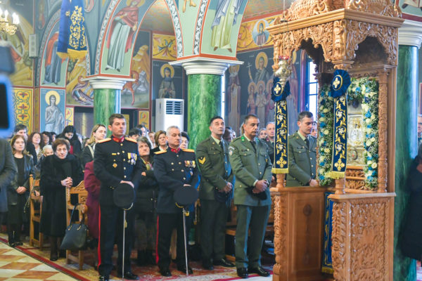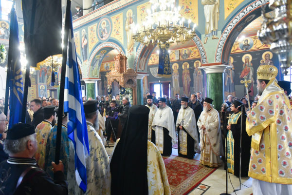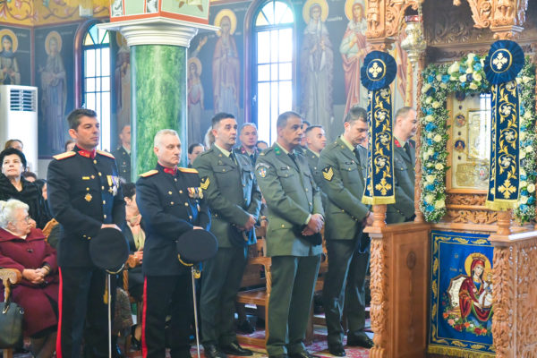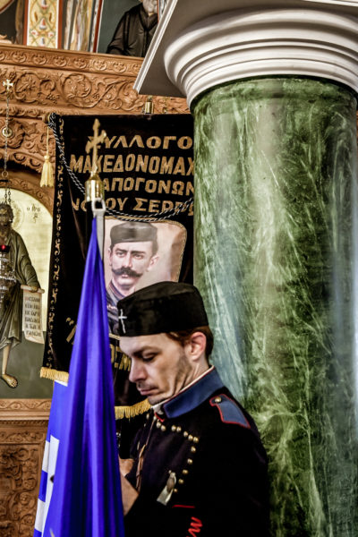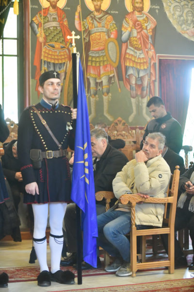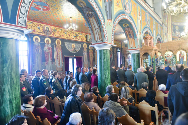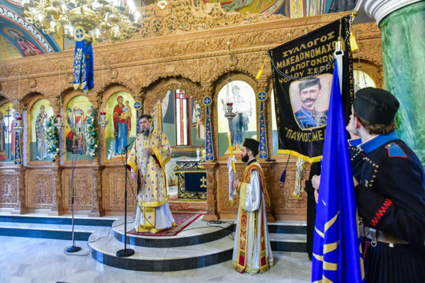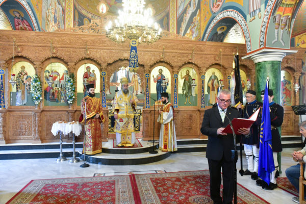 Προ της απολύσεως της θ. Μυσταγωγίας, τελέσθηκε η επίσημος Δοξολογία, στο τέλος της οποίας, ομίλησε για το νόημα της μεγάλης, διπλής εορτής, ο Αντιπρόεδρος της Ενώσεως Αποστράτων Αξιωματικών Στρατού Ν. Σερρών, Τχηςε.α., κ. Ελ. Καραγιαννίδης.