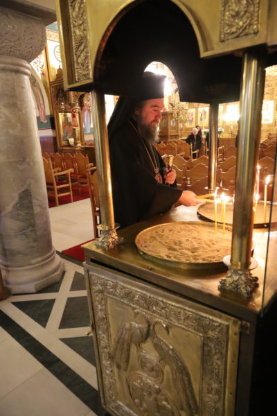 Προ της απολύσεως της Θείας Λιερουργίας, ο Σεβασμιώτατος απευθυνόμενος προς το πολυπληθές εκκλησίασμα, αναφέρθηκε στο μεγάλο μυστήριο της φανερώσεως της Αγίας Τριάδος κατά την εορτή των Θεοφανείων στον Ιορδάνη ποταμό, αλλά και στην δύναμη και το θείο μεγαλείο του πρώτου επί γης κηρύγματος του Κυρίου μας, αυτού περί μετανοίας, ως βασικής προϋποθέσεως της σωτηρίας μας.