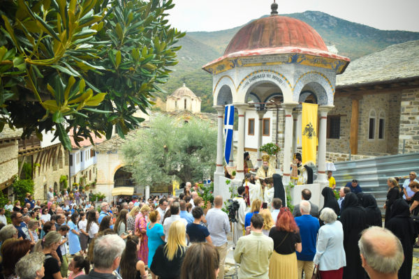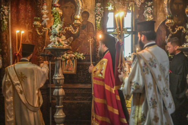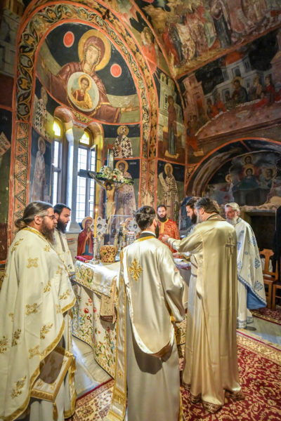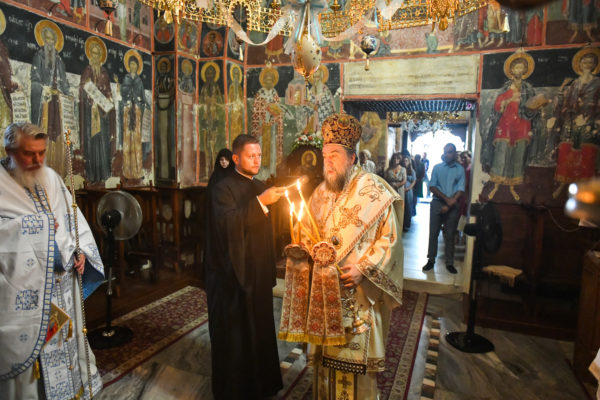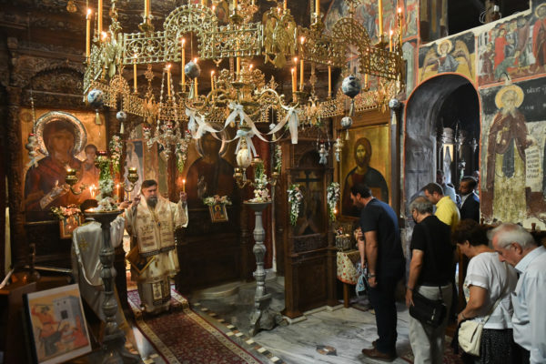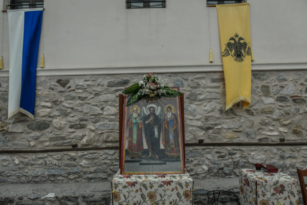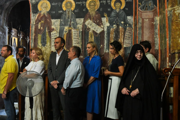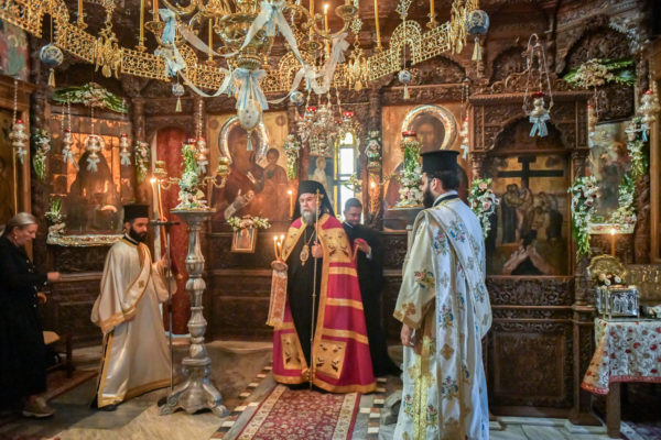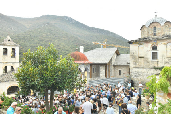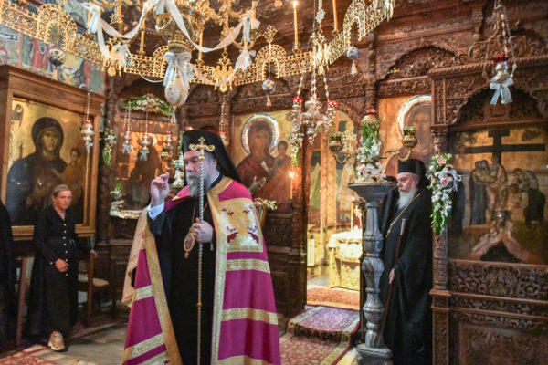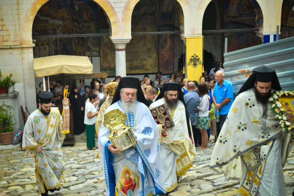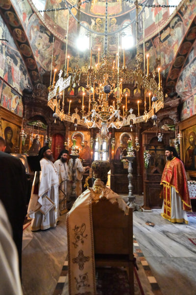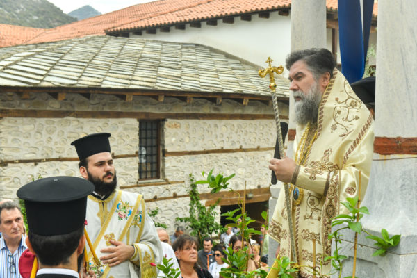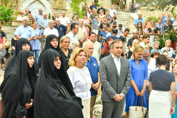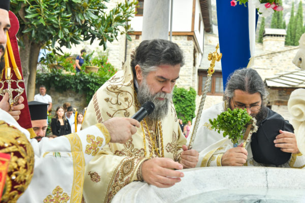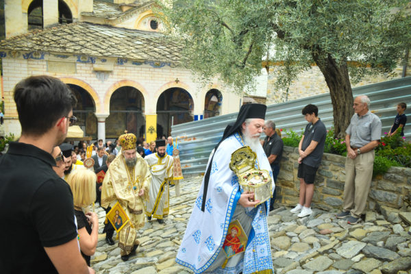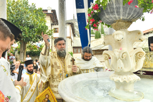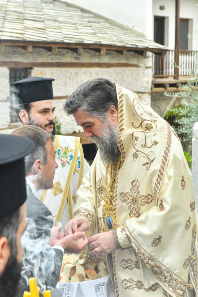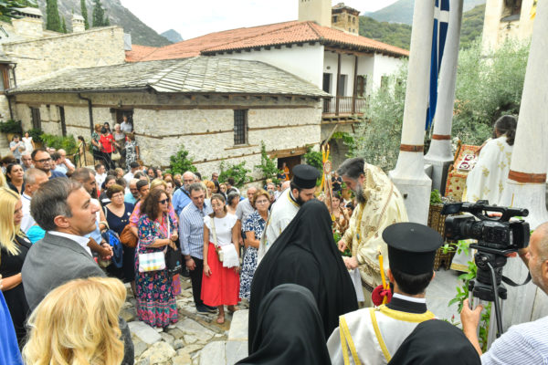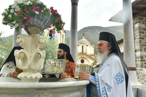 Προ της απολύσεως της θ. Μυσταγωγίας, ιερουργούντος του Σεβ. Μητροπολίτου Σερρών και Νιγρίτης κ. Θεολόγου και με την συμπροσευχητική παρουσία των Βουλευτών του Νομού Σερρών κ. κ.Φ. Αραμπατζή, Θ. Λεονταρίδηκαι Αν. Χατζηβασιλείου, του Αντιπεριφερειάρχου Σερρών κ. Π. Σπυρόπουλου, της Δημάρχου Σερραίων κ. Β. Μητλιάγκα, εκπροσώπων των Στρατιωτικών και Αστυνομικών Αρχών του τόπου και της Πυροσβεστικής Υπηρεσίας Σερρών, καθώς και πλήθους φιλέορτων χριστιανών, ευλογήθηκαν τα εόρτια κόλλυβα του Αγίου και ακολούθως τελέσθηκε, κατά το έθος, η ακολουθία του Αγιασμού στην φιάλη της ιεράς Μονής.