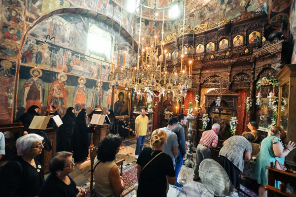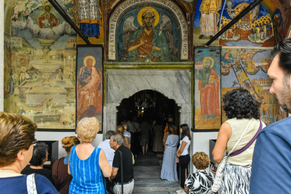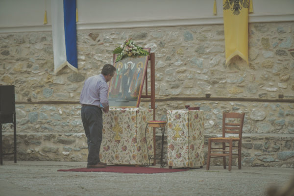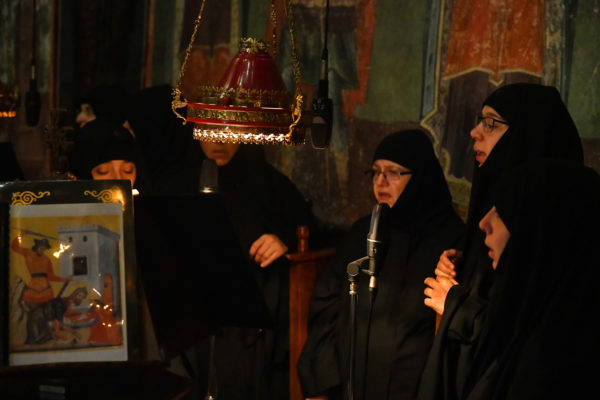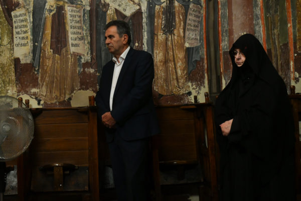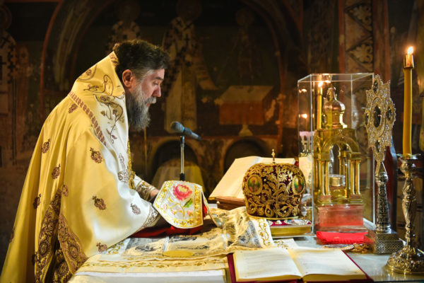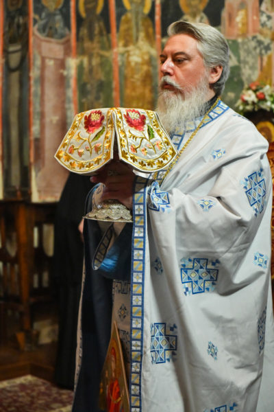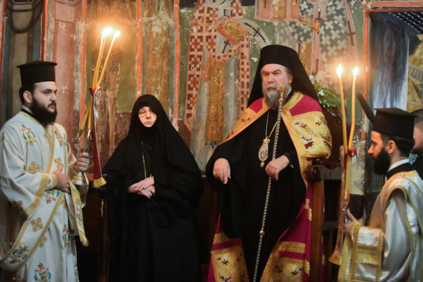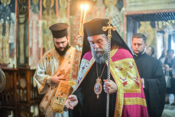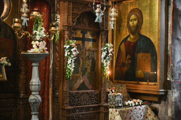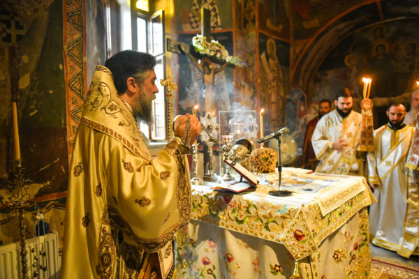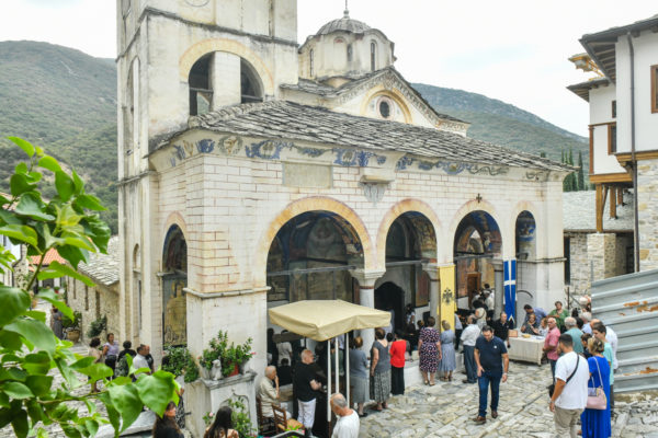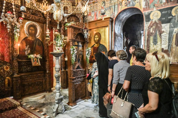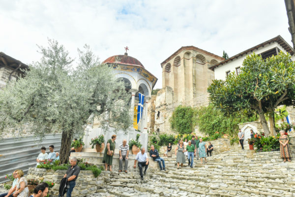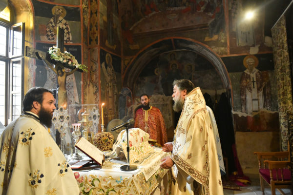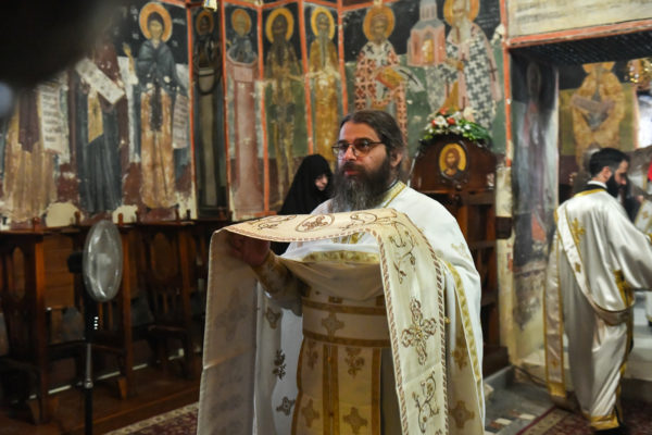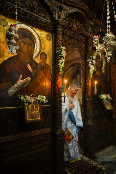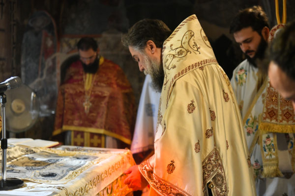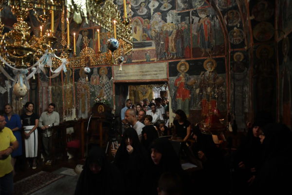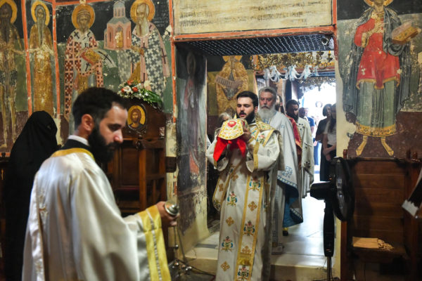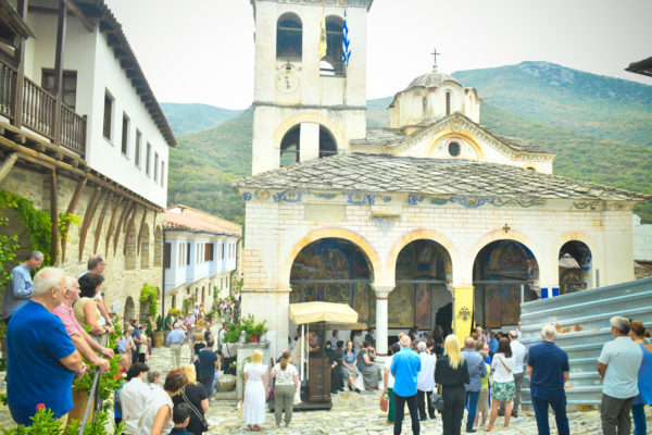 Προ της απολύσεως της θ. Μυσταγωγίας, ιερουργούντος του Σεβ. Μητροπολίτου Σερρών και Νιγρίτης κ. Θεολόγου και με την συμπροσευχητική παρουσία των Βουλευτών του Νομού Σερρών κ. κ.Φ. Αραμπατζή, Θ. Λεονταρίδηκαι Αν. Χατζηβασιλείου, του Αντιπεριφερειάρχου Σερρών κ. Π. Σπυρόπουλου, της Δημάρχου Σερραίων κ. Β. Μητλιάγκα, εκπροσώπων των Στρατιωτικών και Αστυνομικών Αρχών του τόπου και της Πυροσβεστικής Υπηρεσίας Σερρών, καθώς και πλήθους φιλέορτων χριστιανών, ευλογήθηκαν τα εόρτια κόλλυβα του Αγίου και ακολούθως τελέσθηκε, κατά το έθος, η ακολουθία του Αγιασμού στην φιάλη της ιεράς Μονής.