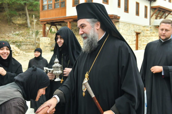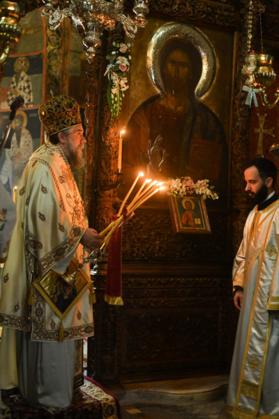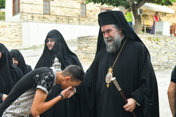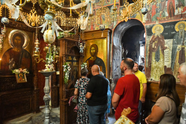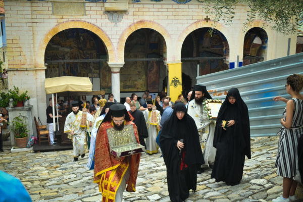 Τέλος, ο Σεβασμιώτατος, επικαλέσθηκε πατρικώς, τόσο στην οσιωτάτη Ηγουμένη, μον. Φεβρωνία και σε ολόκληρη την αδελφότητα της ιεράς Μονής, όσο και στους πολυπληθείς ευσεβείς προσκυνητές, την χάριν του Τιμ. Προδρόμουκαι διενεμήθη σε όλους το πατροπαράδοτο μοναστηριακό κέρασμα.