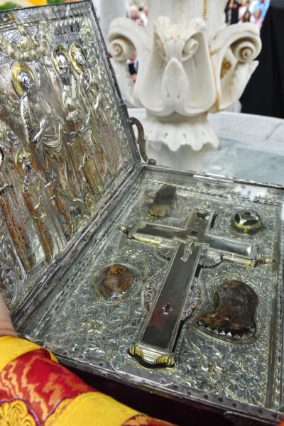 Σε αποστροφή του λόγου του, ο Σεβ. κ. Θεολόγος, αναφέρθηκε και στο πάντοτε επίκαιρο θέμα της επιστροφής των κλαπέντων ιερών κειμηλίων στην Εκκλησία των Σερρών, κατά τα έτη 1913,1917 και 1942.