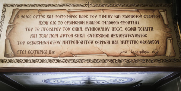 Με μεγαλοπρέπεια και μέσα σε κλίμα θρησκευτικής ευφροσύνης, τελείται λειτουργικώς η εορτή της παγκοσμίου Υψώσεως του Τιμίου και Ζωοποιού Σταυρού και στην Ιερά Μητρόπολη Σερρών και Νιγρίτης, με επίκεντρο τον πανηγυρίζοντα, ομώνυμο ιερό Ναό της πόλεως των Σερρών, όπου, από της παρελθούσης Τετάρτης 11 Σεπτεμβρίου, ευρίσκονται προς κοινό συνεορτασμό μετά της μεγαλωνύμου Δεσποτικής εορτής, αποτμήματα του Ζωομυρίστου Σταυρού και του αρράφου χιτώνος του Κυρίου Ιησού Χριστού, από την ιερά, Σταυροπηγιακή και Πατριαρχική Μονή Παντοκράτορος Αγίου Όρους.