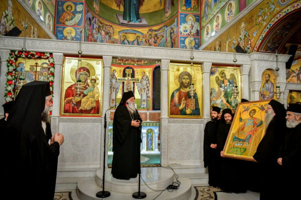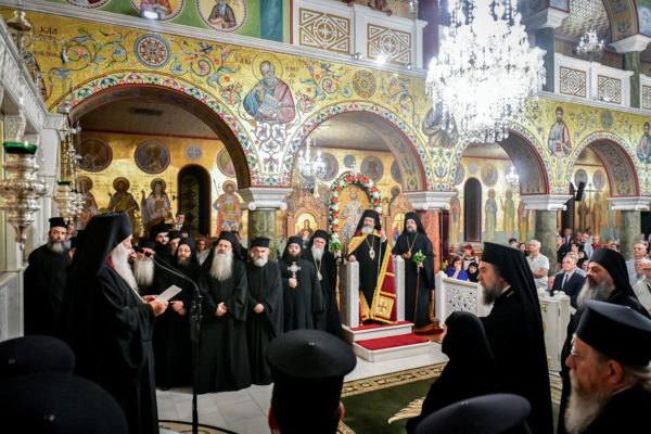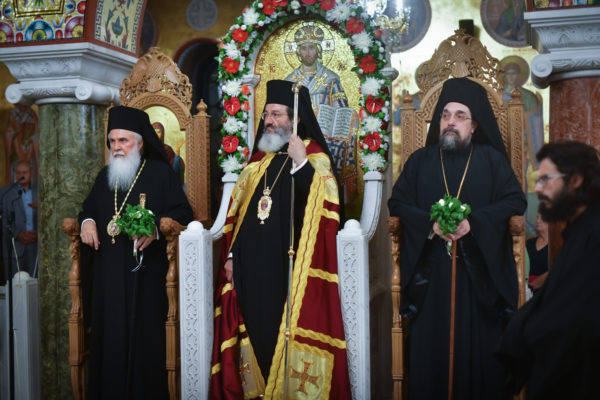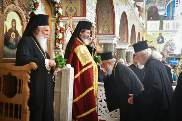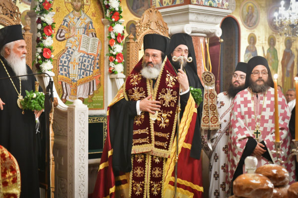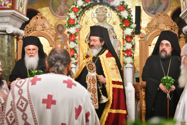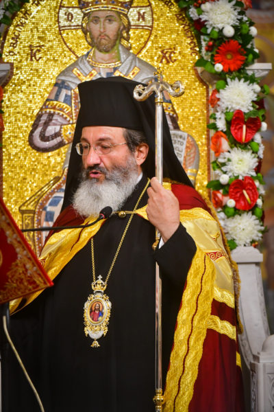 Ακολούθως, ο Σεβ. Ποιμενάρχης της Σερραϊκής Εκκλησίας κ. Θεολόγος, στον σύντομο χαιρετισμό του, ευχαρίστησε θερμώς τους αγίους Αρχιερείς, τους Άρχοντες του τόπου και τον φιλάγιο λαό του Θεού, για την όλως συγκινητική και τιμητική συμμετοχή τους στις φετινές εορταστικές ακολουθίες του Σταυρού του Κυρίου μας.