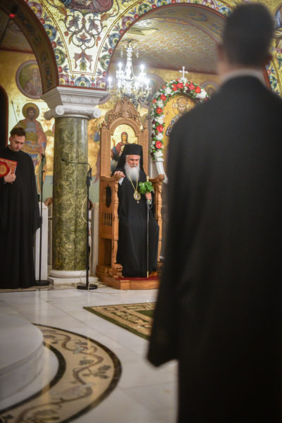 «Η αποψινή εόρτιος λατρευτική σύναξη έχει και μίαν ακόμη ιδιαιτέραν σημειολογίαν.Ασφαλώς, κατά πρώτον, συναχθήκαμε το Κυριακόν Σώμα, για ναυμνήσουμετον Τρισάγιον Θεόν. Εκείνον προσκυνούμεν, Εκείνον δοξάζομεν και Εκείνον λατρεύομεν, από μέσης καρδίας, σήμερον και πάντοτε, δια τον ανεξιχνίαστον πλούτον των φανερών και αφανών ευεργεσιών ‘’των εις ημάς γεγενημένων’’.