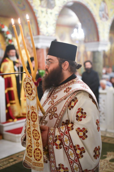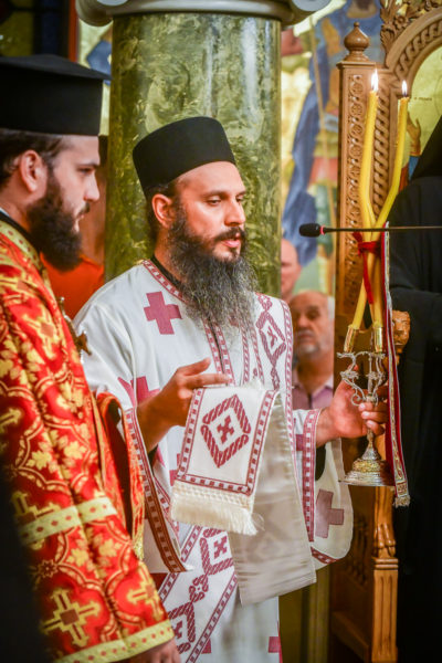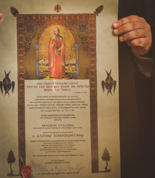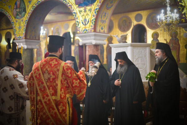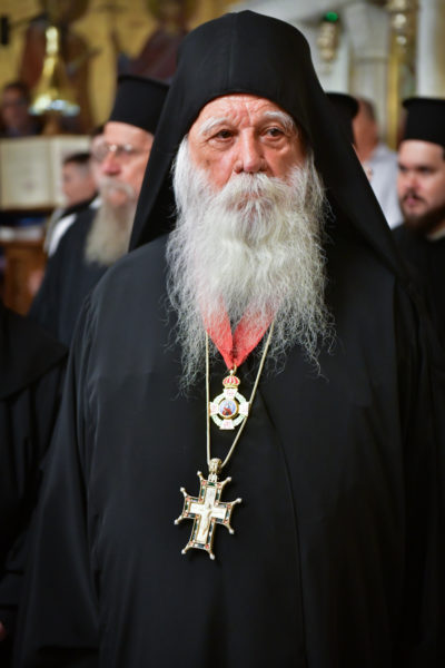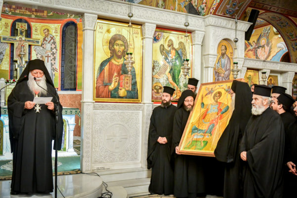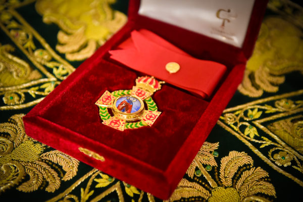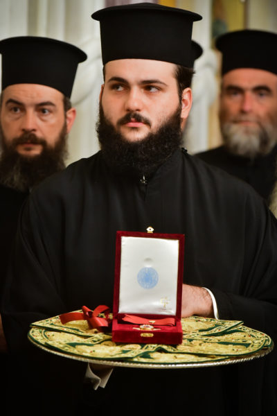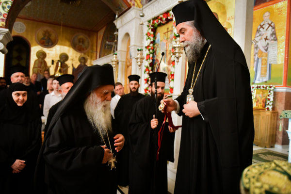 Στη συνέχεια, ο Σεβασμιώτατος, ετίμησε τον άγιο Καθηγούμενο, με την ανωτέρα διάκριση της τοπικής Εκκλησίας, τον Χρυσό, δηλαδή, Σταυρό του Αγίου Νεομάρτυρος Νικήτα και διά επισήμου Αρχιερατικού Πιττακίου, για όσα φιλοθέως και φιλοπόνως, επί μακρά σειρά ετώνπροσφέρει, στη διακονία και μαρτυρία του μοναχικού καιιερατικού λειτουργήματος.