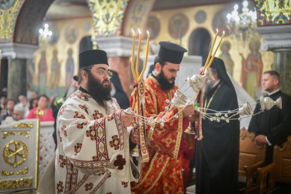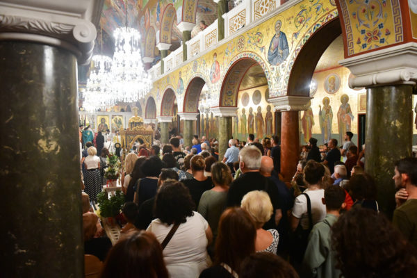 Αφ’ εσπέρας της μεγάλης εορτής, την Παρασκευή 13 Σεπτεμβρίου 2024, στις 7:00 το απόγευμα, τελέσθηκε ο μέγας,πανηγυρικός Εσπερινός, στον ως είρηται εορτάζοντα ιερό Ναό, χοροστατούντος του Θεοφ. Επισκόπου Μεσαορίας κ. Γρηγορίου, εκ της Εκκλησίας της Κύπρου, συγχοροστατούντων του Σεβ. Μητροπολίτου Λήμνου και Αγ. Ευστρατίου κ. Ιεροθέου, των Θεοφ. Επισκόπων Δορυλαίου κ. Δαμασκηνού και Μπουκόμπας και Δυτικής Τανζανίας κ. Χρυσοστόμου και του οικείου Ποιμενάρχου, Σεβ. Μητροπολίτου Σερρών και Νιγρίτης κ. Θεολόγου.