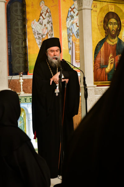 «Και τα νυν, Σεβασμιώτατε Πάτερ και Δέσποτα, συμπλήρωσε ο άγιος Καθηγούμενος, άγων ήδη το 85ο έτος της ηλικίας μου, ευρίσκομαι ενώπιόν Σας, βαθειά συγκινημένος, ευγνωμονών την φιλόστοργον πατρικήν καιαρχοντικήν,Αρχιερατικήν καρδίαν Σας, διά την τιμήν, την οποίαν περιποιείτε στην ταπεινότητά μου, με την αφορμή της προσγινομένης στην ελαχιστότητά μου, υψίστης διακρίσεως της κατά Σέρρας και Νιγρίταν συνεκλεκτής, αλλά και των πολυτίμων Αρχιερατικών ευχών Σας.