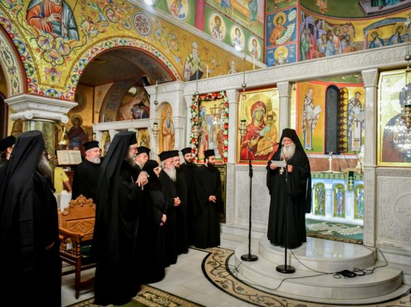 Η εν ώραις αισίαις συμπλήρωσιςεξηκονταετούς, θεοφιλούς ιερατικής διακονίας και μοναχικήςμαρτυρίας, υπέρ της αγίας του Χριστού Εκκλησίας και της παλαιφάτου μάνδρας του οσίου Ξενοφώντος, στο Αγιώνυμον Όρος, την πνευματική πηδαλιουχία της οποίας η πρόνοια του αγίου Θεού σας έχει εμπιστευθείκαι υπέρ της οποίας, κυριολεκτικώς έχετε αναλωθεί, ως λαμπάς καιομένη και φωτίζουσα, αλλά και η ανάλογηλαμπρά διακονία σαςστα άγια Μετέωρα το πρότερον, προσφέρει σήμερον, μίαν αρίστην και πρόσφορον αφορμήν σε όλους μας, για να σας εκφράσουμε εγκάρδιες, συγχαρητήριες ευχές και προσρήσεις, δεόμενοι εκτενώς του Παναγίου της Εκκλησίας Δομήτορος, να σας χαρίζη έτη πολλά και παρά Θεού, δαψιλώς ευλογημένα επί μήκιστον, πεπληρωμένα ουρανίων γλυκασμών και χαρίτων, πλησμονή πνευματικών και σωματι-κών δυνάμεων, προς θεάρεστον συνέχισιν του μονα¬χικού δολίχου καιαγιοπνευματικόν στηριγμόν της τιμίας, μοναχικής σας συνοδείας, εν τω Αγιωνύμω Όρει και αλλαχού της Πατρίδος».