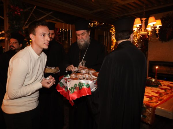 Στη συνέχεια, ο Σεβασμιώτατος μοίρασε ευλογίες σε όλους τους νέους καθώς και τα κομμάτια της αγιοβασιλειόπιτας, το φλουρί της οποίας αντιστοιχούσε σε ένα χρηματικό ποσό, το οποίο «έλαχε» στην φοιτήτρια Πληροφοριακών Συστημάτων του τμήματος Εφαρμοσμένης Πληροφορικής του ΠΑ.ΜΑΚ., κ. Νικολέτα Κιοσσέ.
