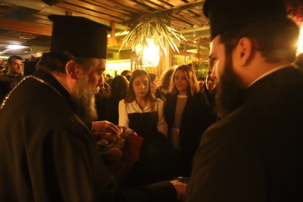 Ο Σεβασμιώτατος, αφού ευλόγησε την πατροπαράδοτη αγιοβασιλειόπιτα, μίλησε προς όλους τους φοιτητές και τις φοιτήτριες, τονίζοντας μεταξύ άλλων την μεγάλη αξία της πίστεως στον Χριστό, ως Θεό και Σωτήρα, στη ζωή των νέων ανθρώπων, που τώρα κτίζουν τη ζωή τους. Τους προέτρεψε να αγωνίζονται με συνέπεια, δύναμη και μεθοδικότητα για την πραγμάτωση των ονείρων και των στόχων τους, σφυρηλατώντας έναν χαρακτήρα με πίστη,αρχές, ιδανικά και αξίες.