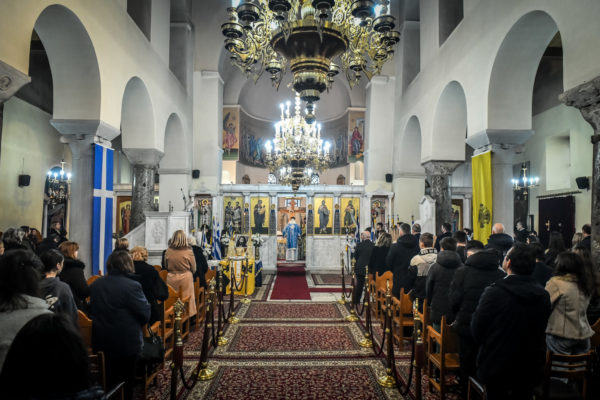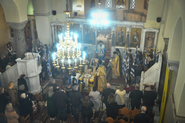 Κατά την διάρκεια της θ. Μυσταγωγίας, ανεγνώσθη το Μήνυμα της Ιεράς Συνόδου της Εκκλησίας της Ελλάδος επί τη εορτή των Αγίων τριών Ιεραρχών. Προ της απολύσεώς της τελέσθηκε Αρχιερατικό μνημόσυνο υπέρ μακαρίας μνήμης και αιωνίου αναπαύσεως της ψυχής του αειμνήστου Αρχιεπισκόπου Αθηνών και πάσης Ελλάδος κυρού Χριστοδούλουκαι των ψυχών των κεκοιμημένων εκπαιδευτικών, μαθητριών και μαθητών της Πατρίδος μας, καθώς και των θυμάτων της σιδηροδρομικής τραγωδίας των κοιλάδος των Τεμπών.