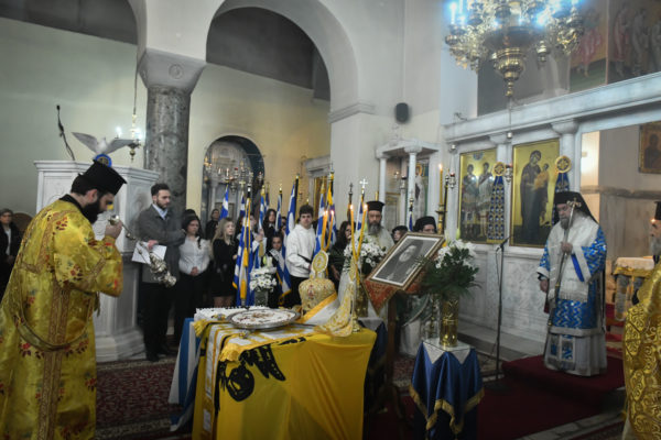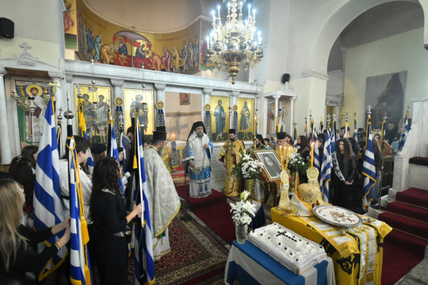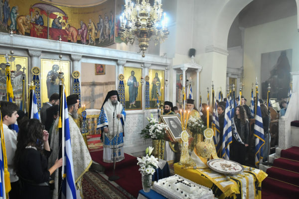 Τέλος, ο Σεβ. κ. Θεολόγος, ευχήθηκε χρόνια φωτισμένα και ευλογημένα στην εκπαιδευτική κοινότητα του τόπου και σε όλους τους συμπροσευχηθέντες πιστούς, που προσήλθαν για να τιμήσουν την μνήμη των Αγίων προστατών των ελληνικών γραμμάτων και της παιδείας.