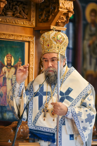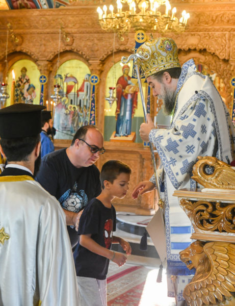 Ο Σεβασμιώτατος, εμπνεόμενος από την σημερινή Ευαγγελική περικοπή: «Τῷ καιρῷ ἐκείνῳ, ἠνάγκασεν ὁ Ἰησοῦς τοὺς μαθητὰς αὐτοῦ ἐμβῆναιεἰς τὸπλοῖον…» (Μτθ. ιδ’ 22-34), αναφέρθηκε στη δύναμη της προσευχής, της εγκαρτέρησης, της υπομονής και κυρίως της πίστεως στον Κύριό μας.